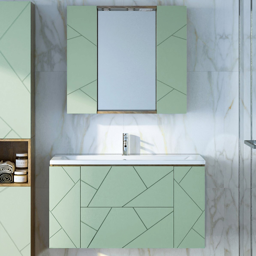 Мебель для ванной комнаты Бриклаер Кристалл 100 фисташка, дуб гранж песочный