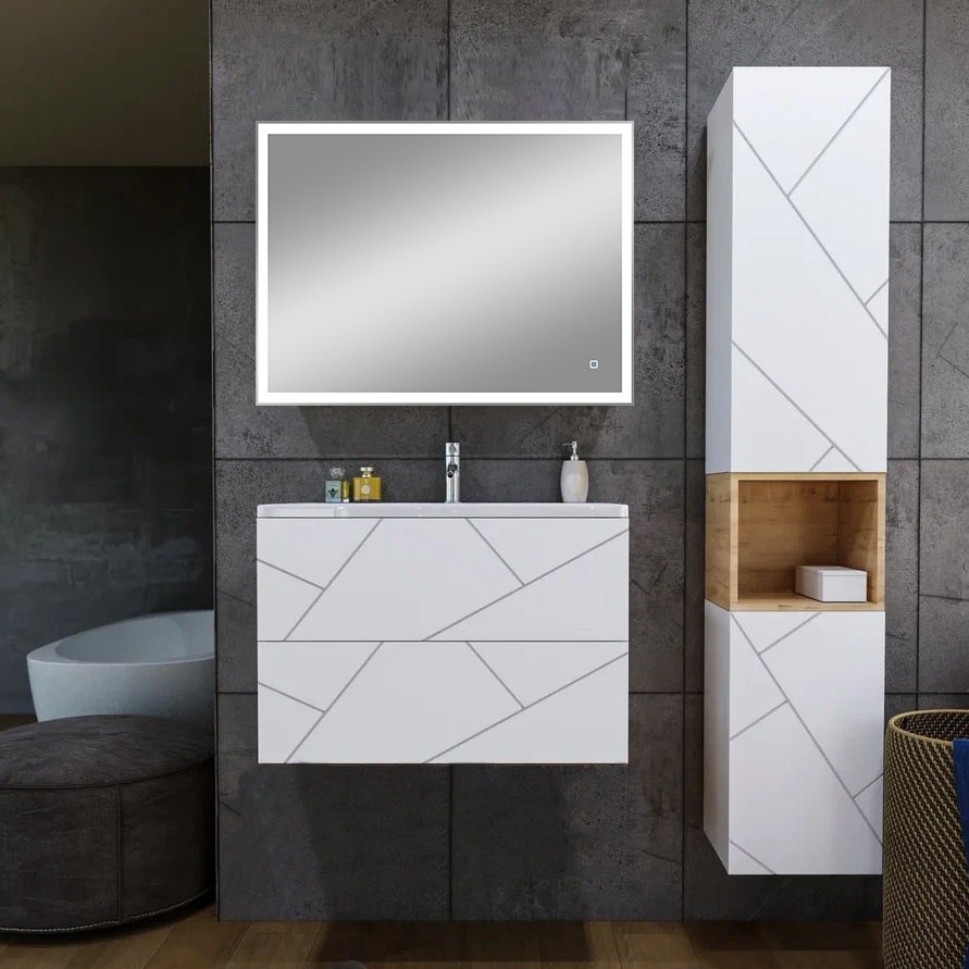 Мебель для ванной комнаты Бриклаер Кристалл 80 белая матовая, зеркало DIWO Дмитров
