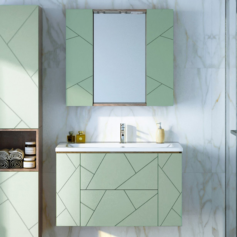 Мебель для ванной комнаты Бриклаер Кристалл 90 фисташка, дуб гранж песочный