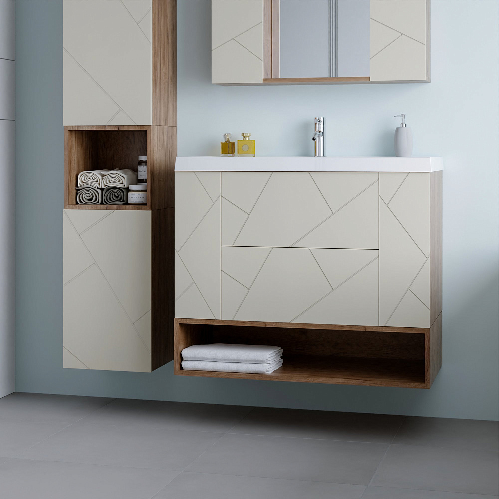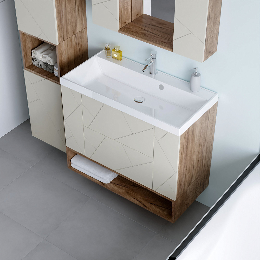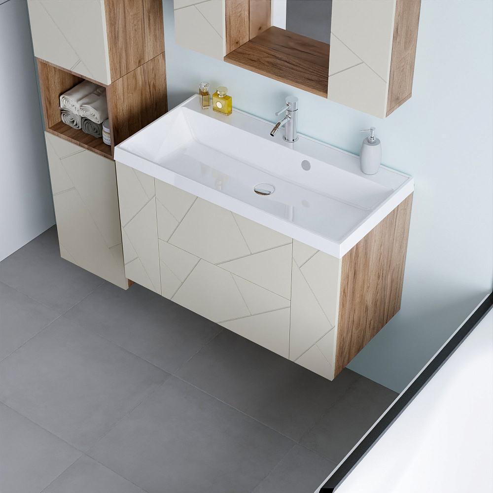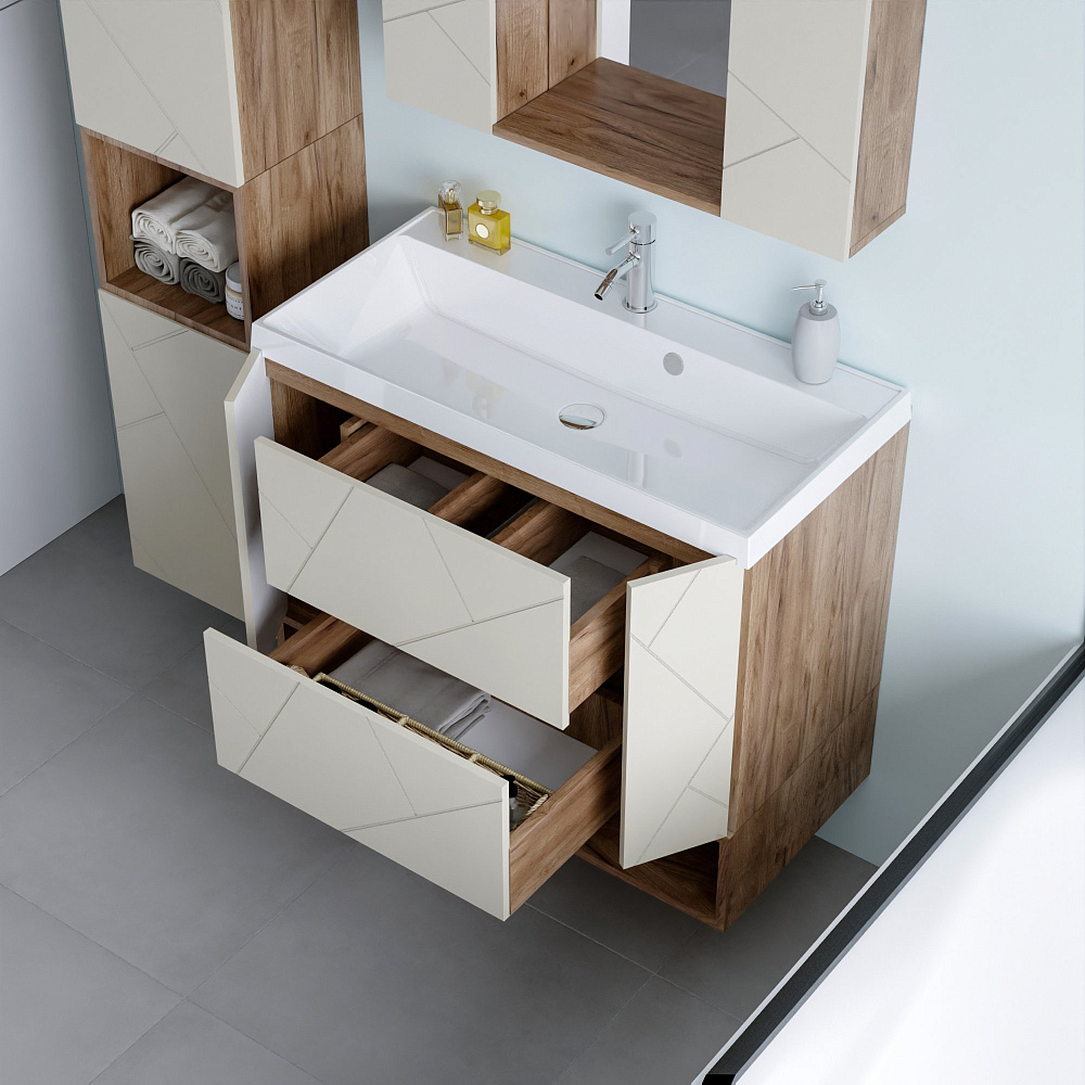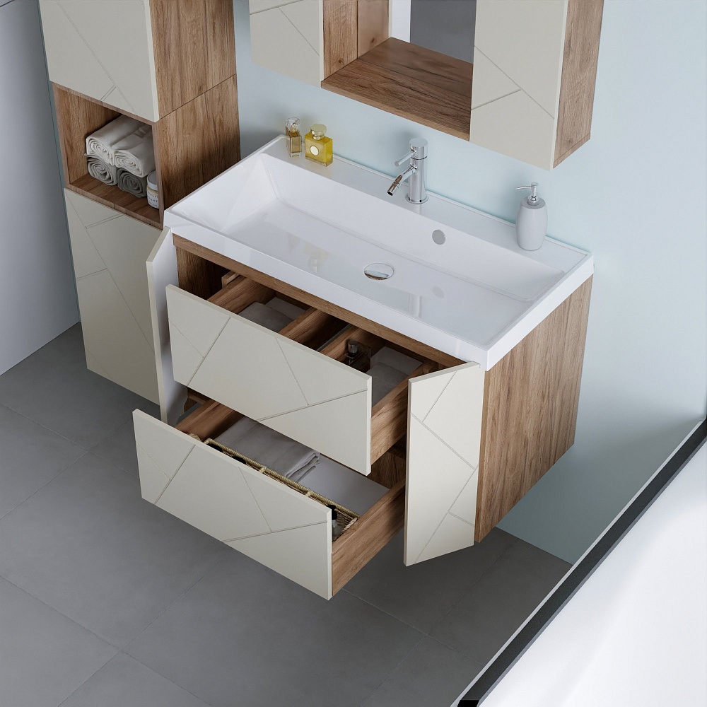 Мебель для ванной комнаты Бриклаер Кристалл 90 латте, дуб крафт табачный