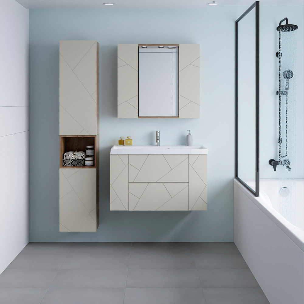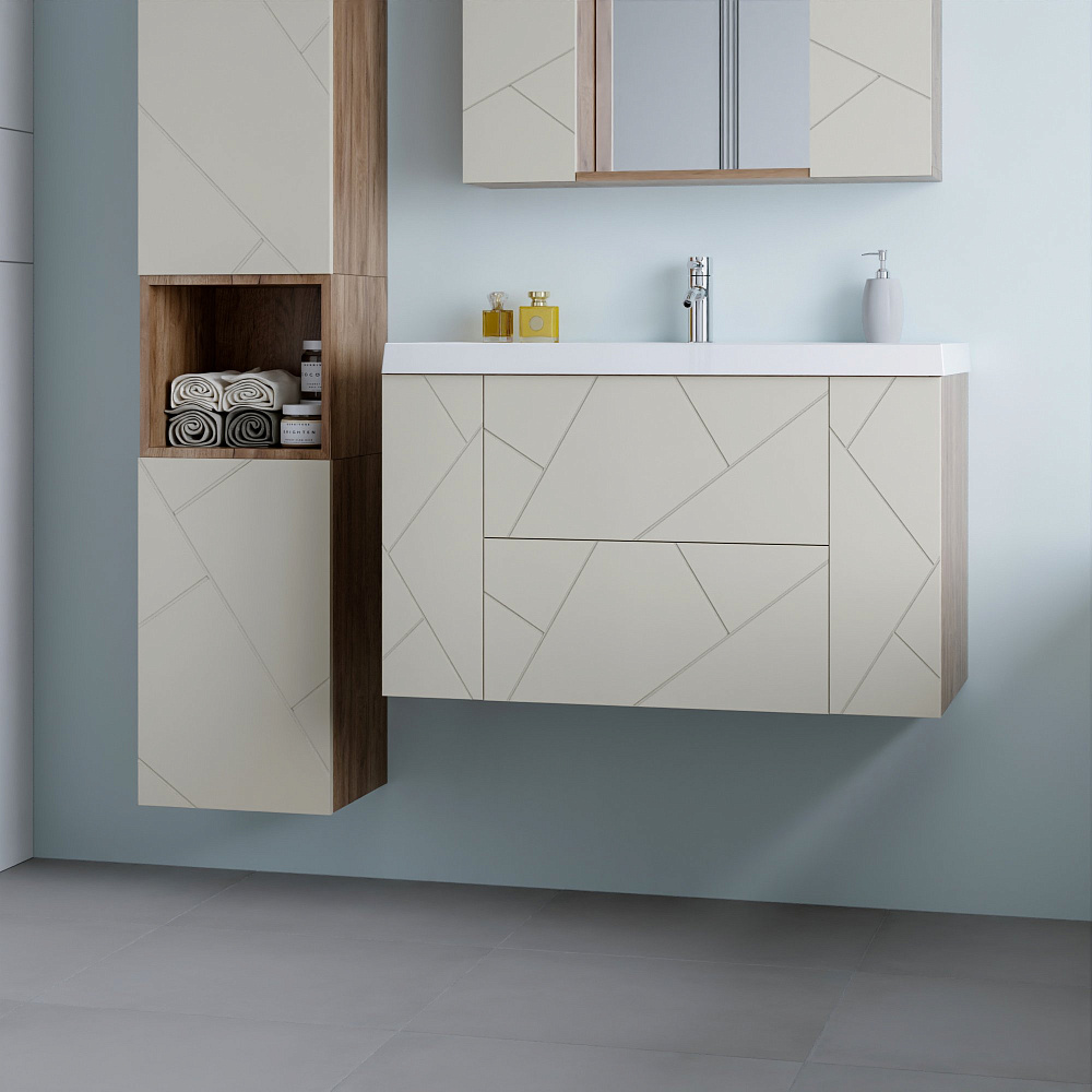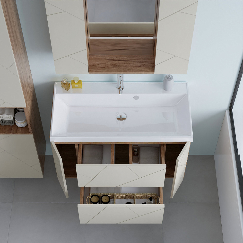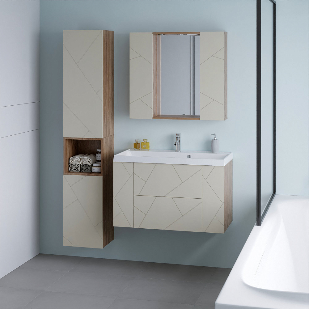 Мебель для ванной комнаты Бриклаер Кристалл 90 латте, дуб крафт табачный