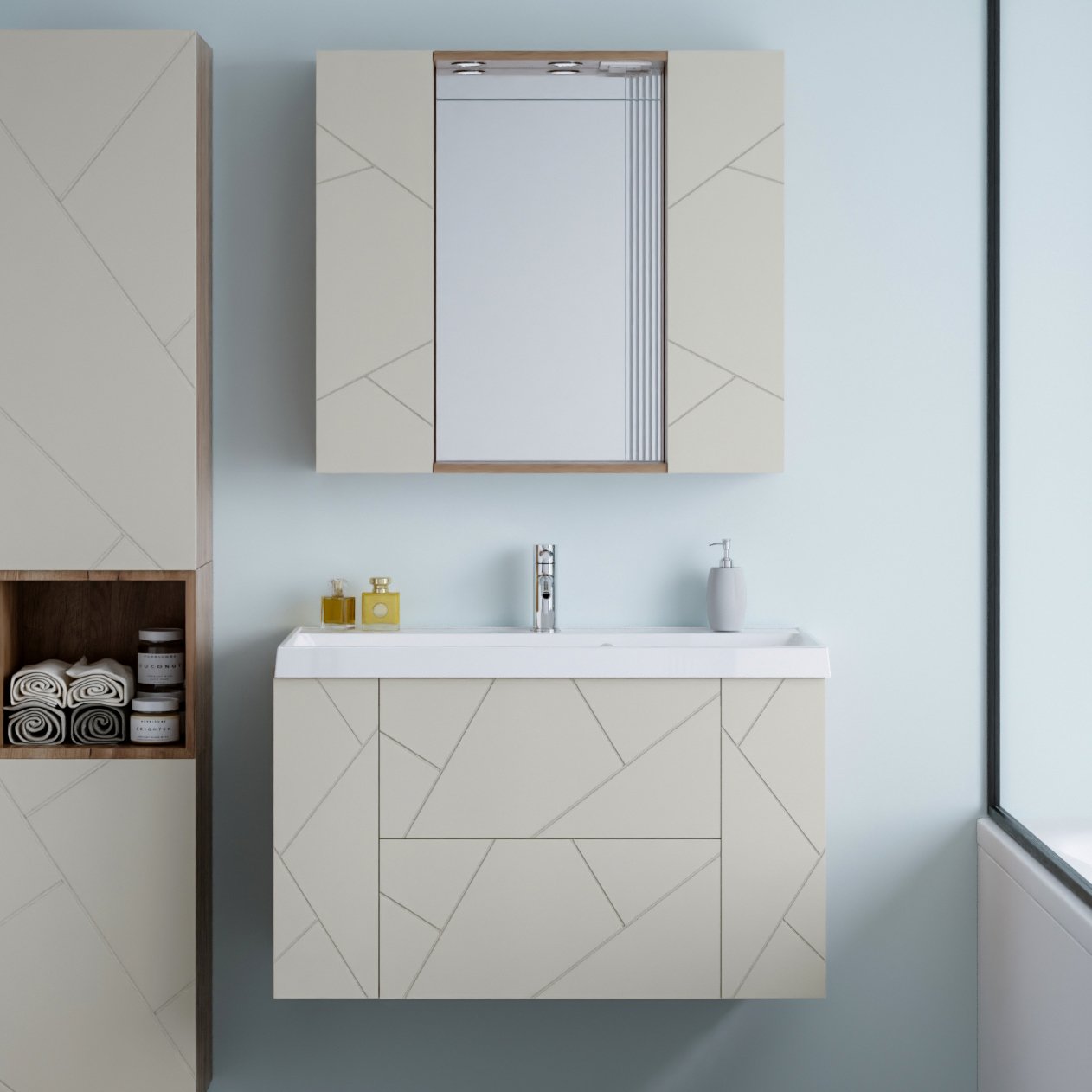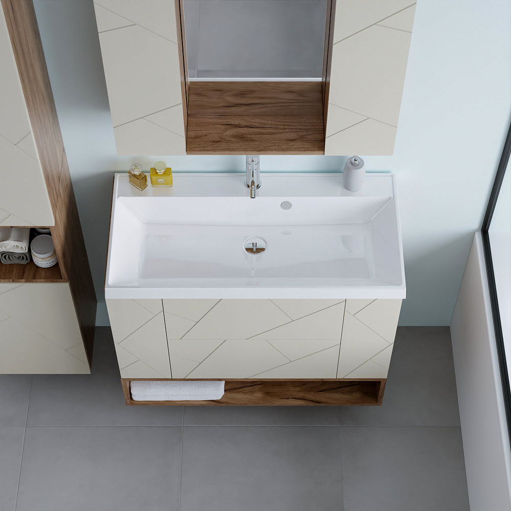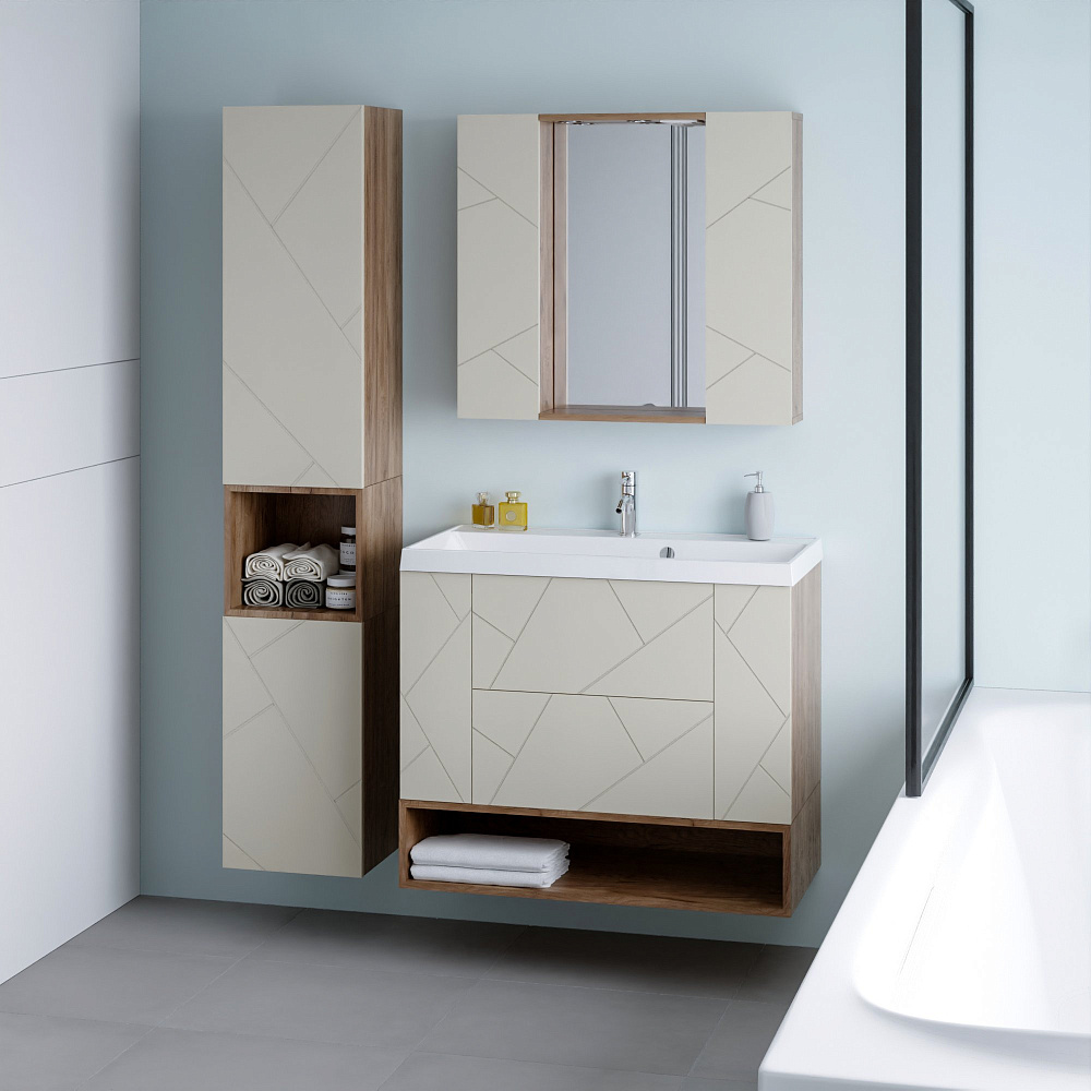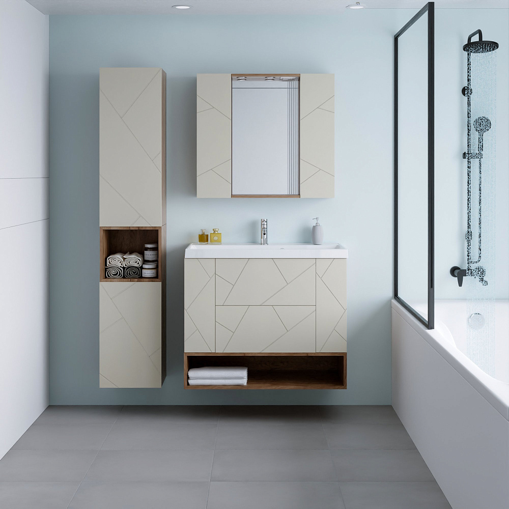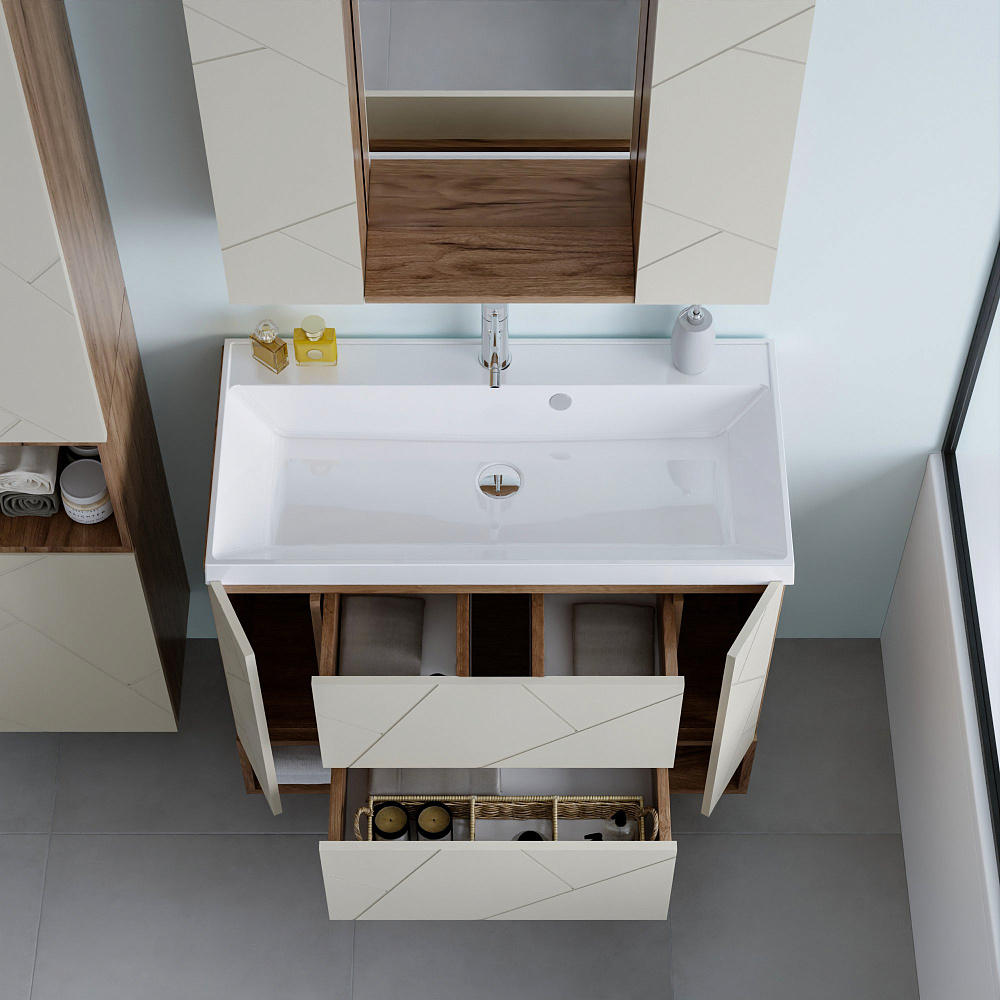 Мебель для ванной комнаты Бриклаер Кристалл 90 латте, дуб крафт табачный