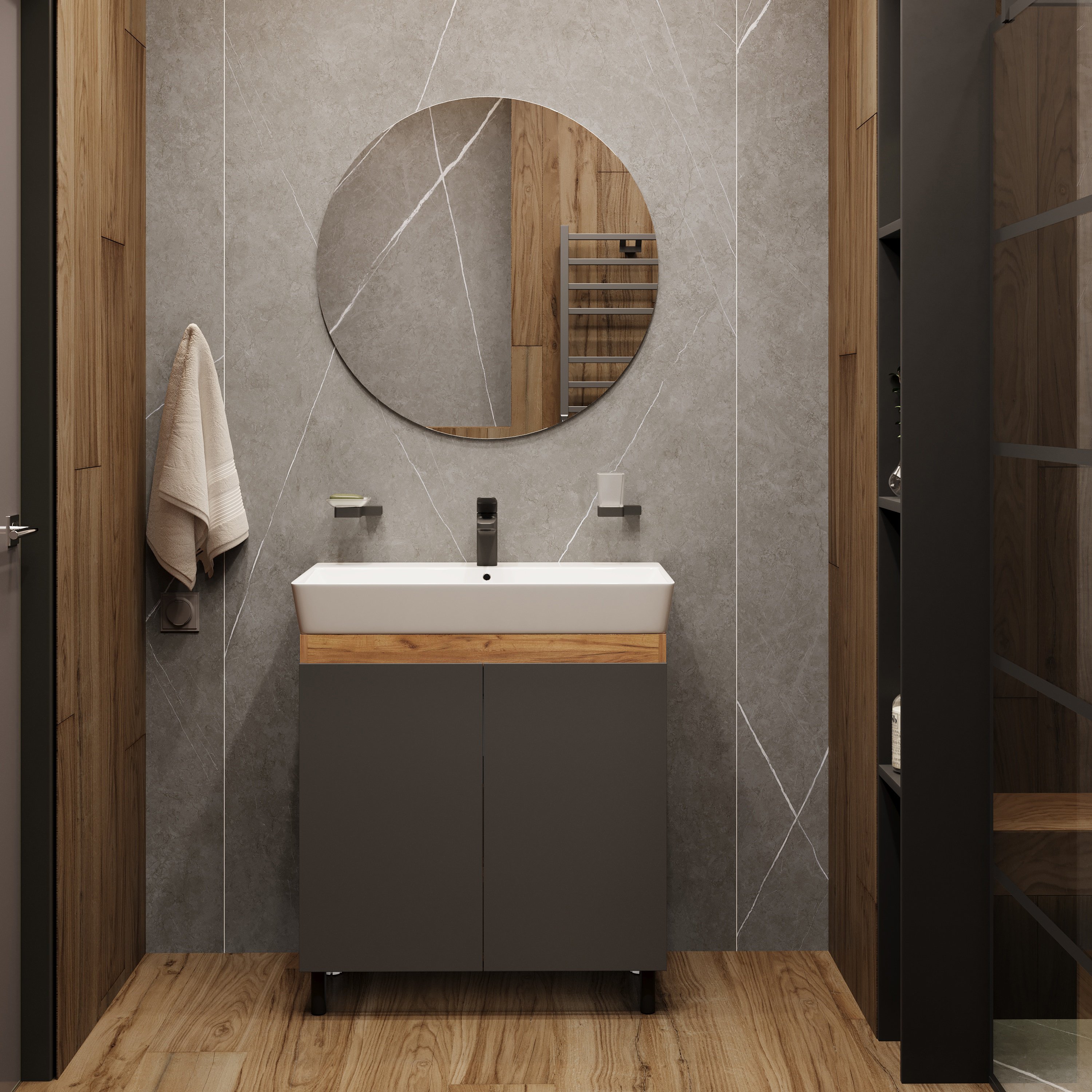 Мебель для ванной комнаты DIWO Кострома 80 напольная, антрацит