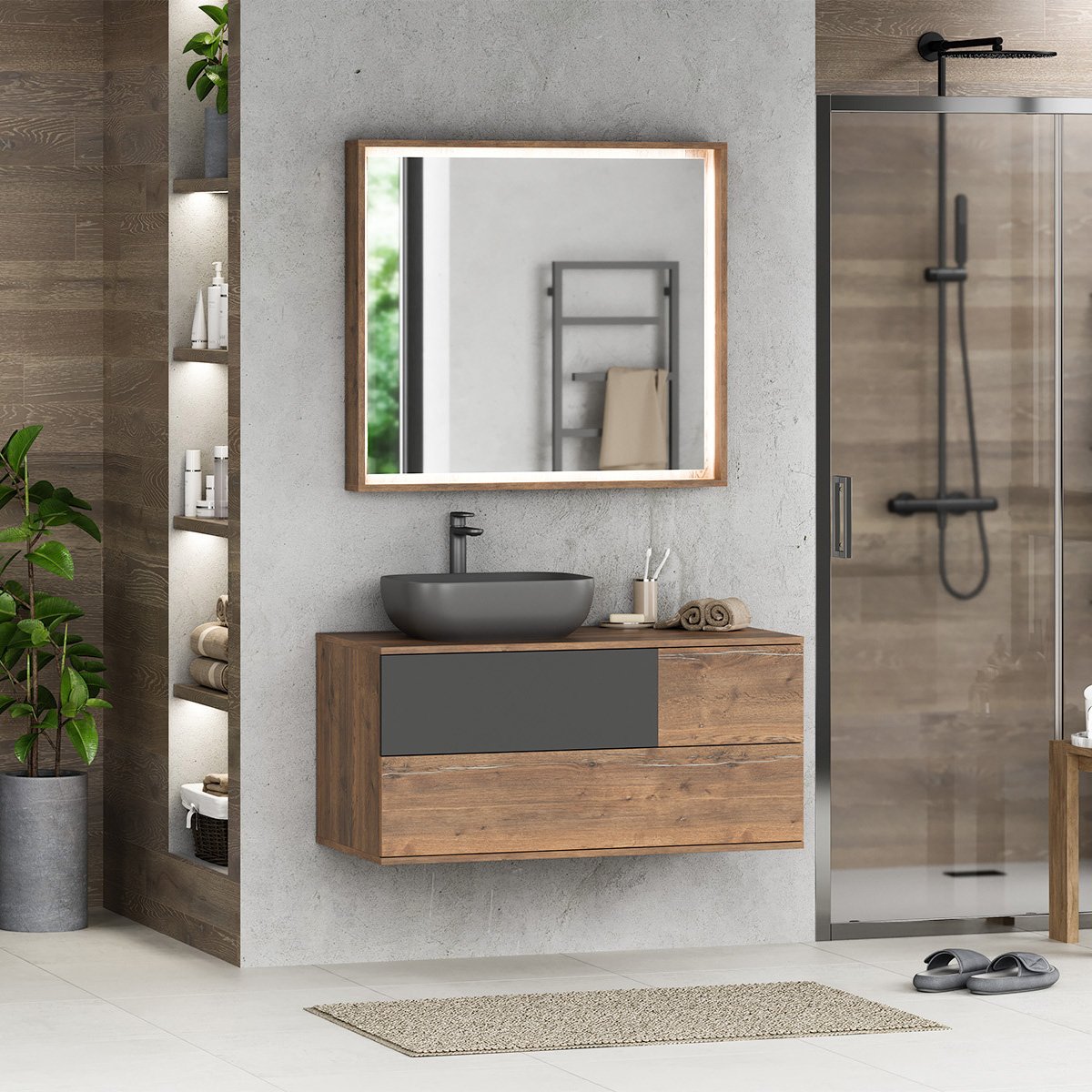 Мебель для ванной комнаты Misty Коломбо 100 L дуб галифакс, антрацит