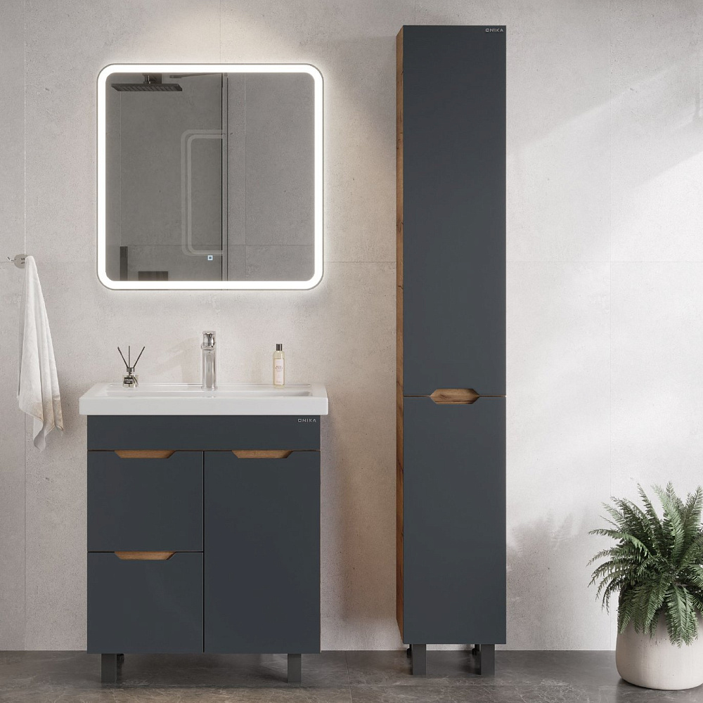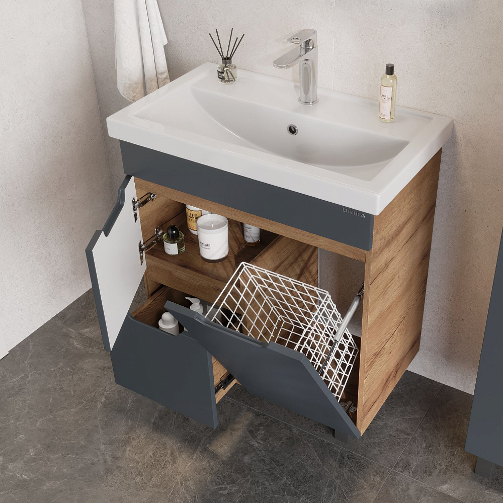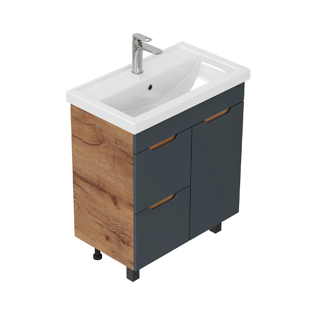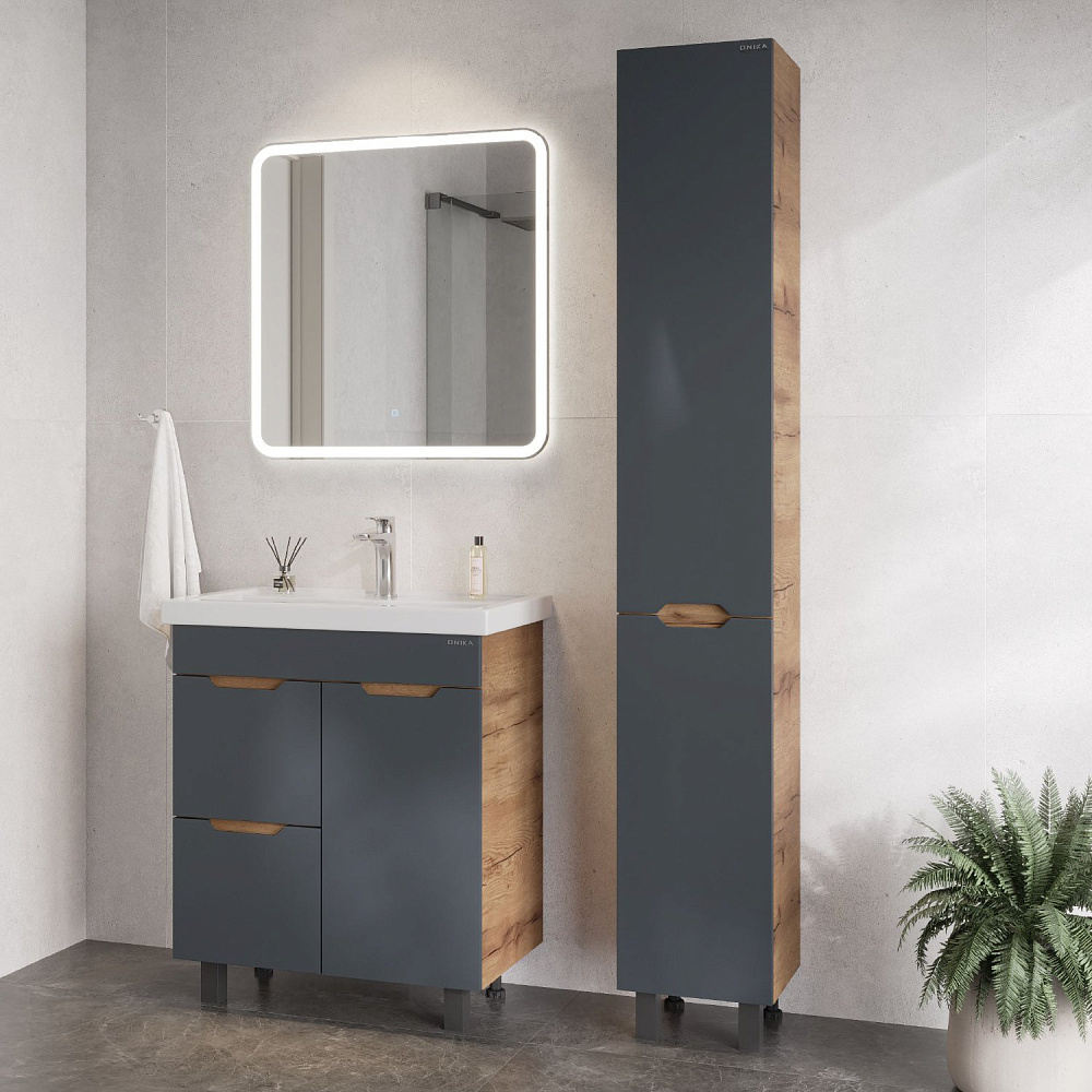 Мебель для ванной комнаты Onika Айленд 70 напольная, графит, дуб крафт золотой