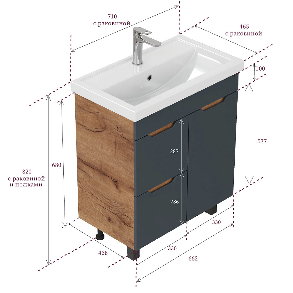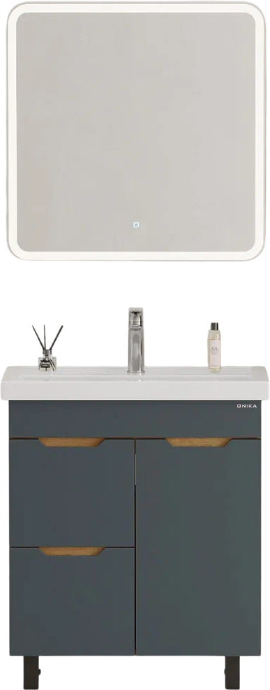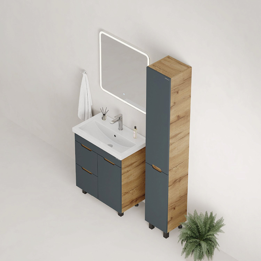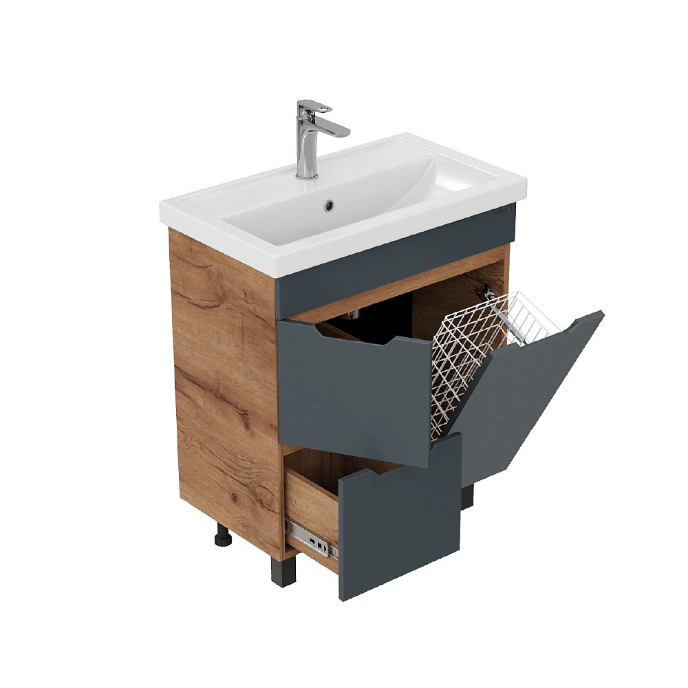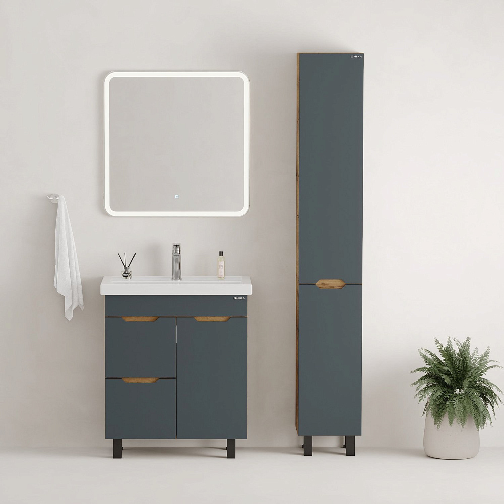 Мебель для ванной комнаты Onika Айленд 70 напольная, графит, дуб крафт золотой