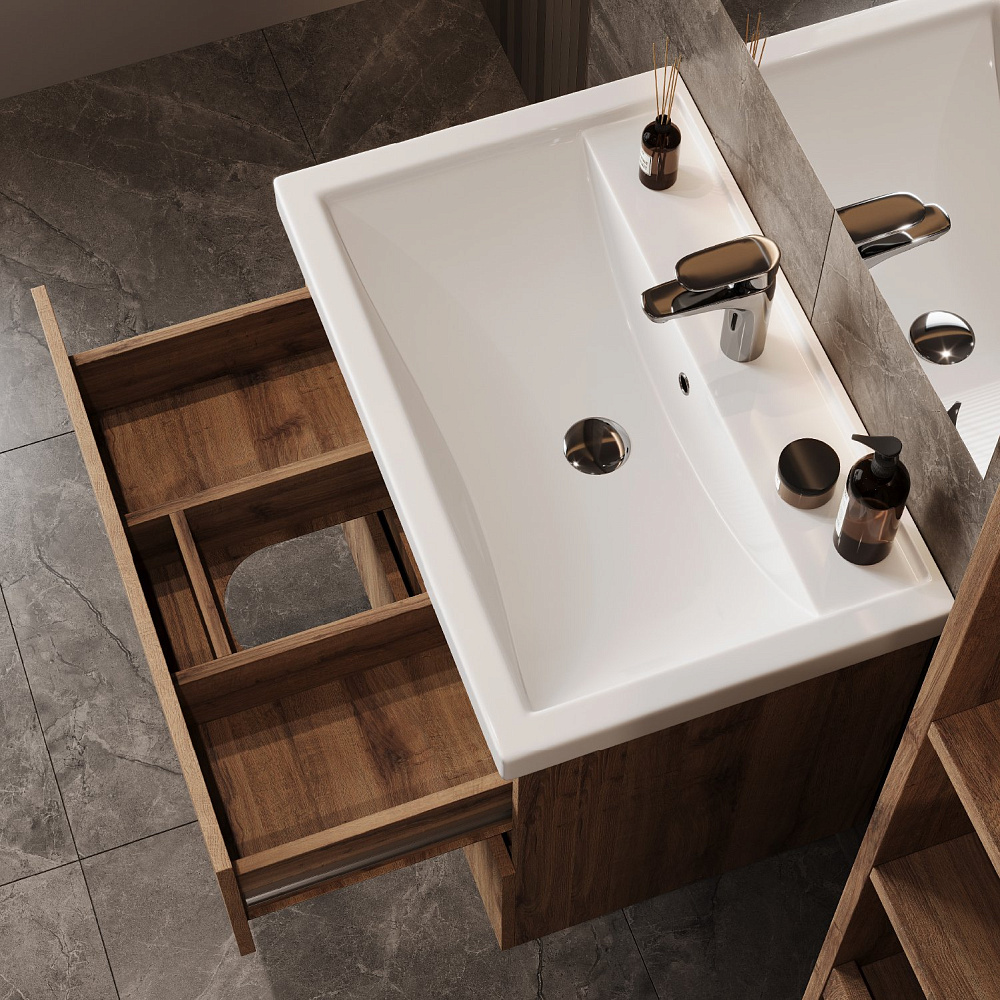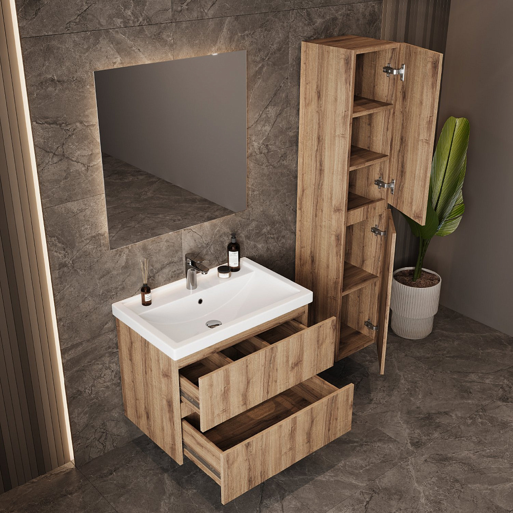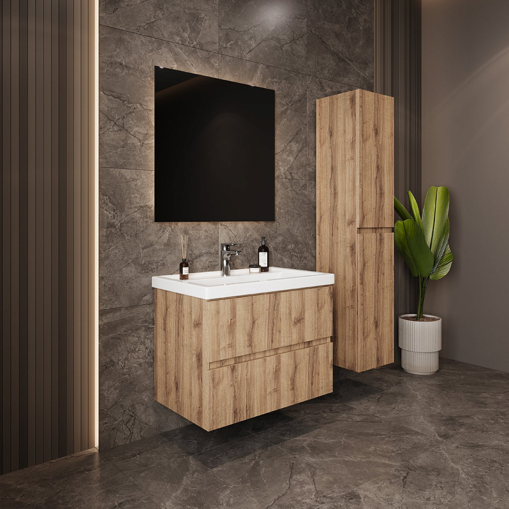 Элегантная подвесная тумба для ванной комнаты Onika Дарон 60 в оттенке дуб крафт золотой станет гармоничным акцентом современного интерьера. Два просторных ящика оснащены надёжными доводчиками, обеспечивающими плавное и бесшумное закрывание. Интегрированные ручки подчёркивают лаконичный дизайн и удобство использования. Подвесная конструкция тумбы создает ощущение легкости, не создает неудобств при уборке помещения и визуально расширяет пространство.