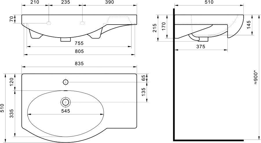 Мебель для ванной комнаты Onika Эльбрус 82 R