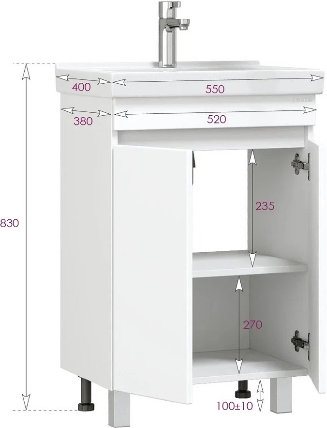 Мебель для ванной комнаты Onika Милтон Квадро 55 напольная, белая