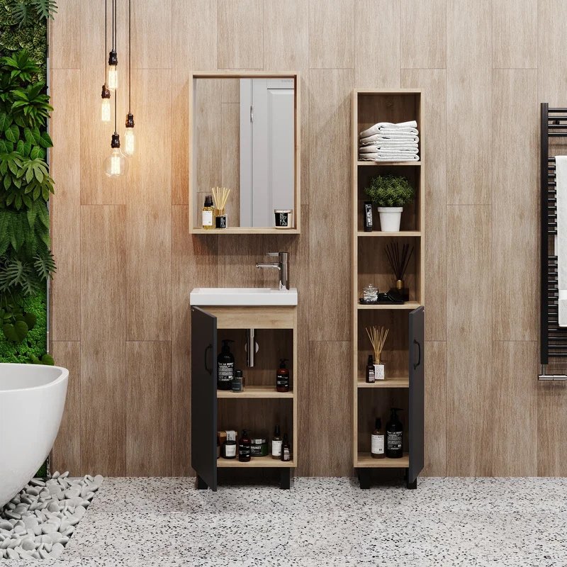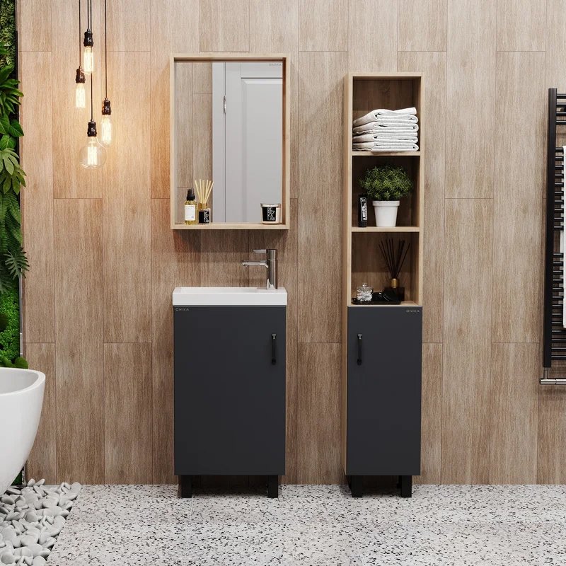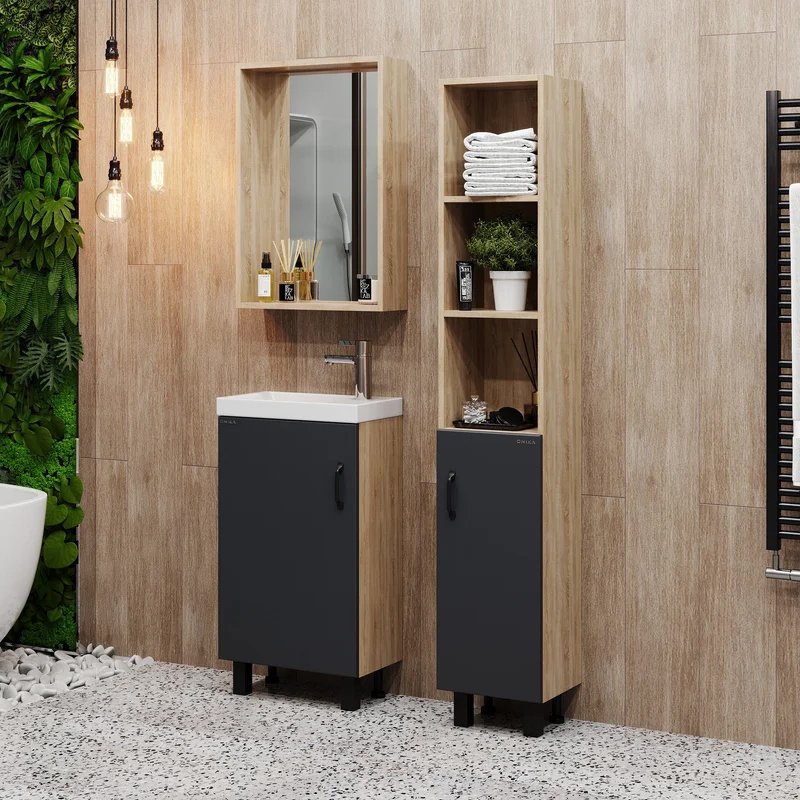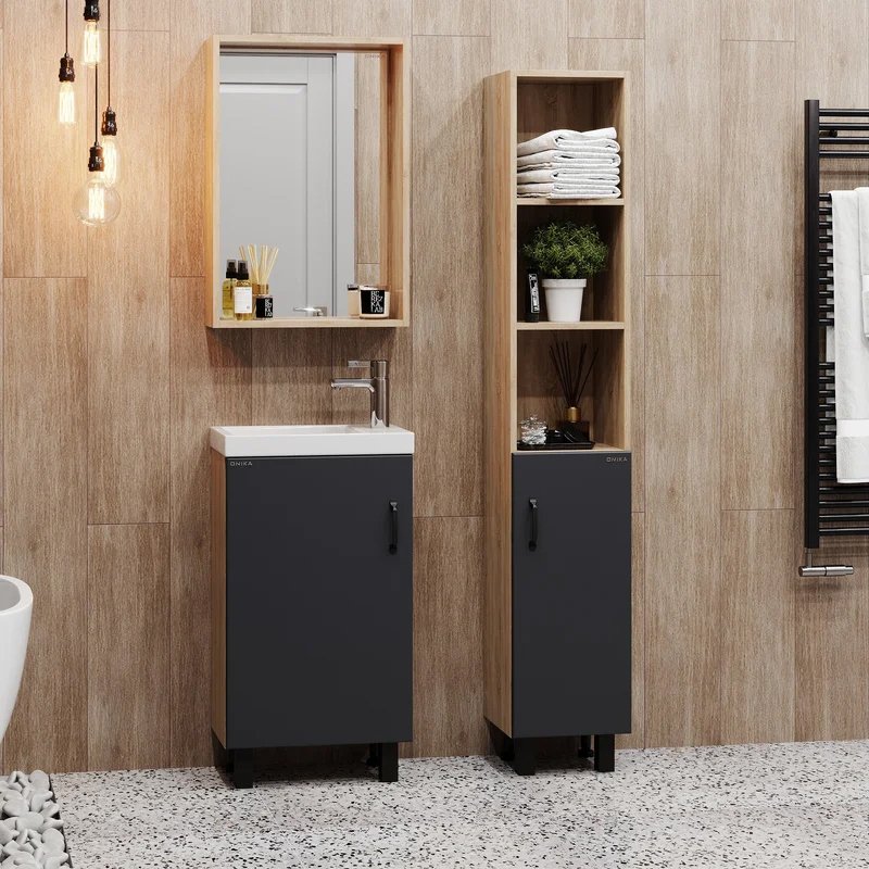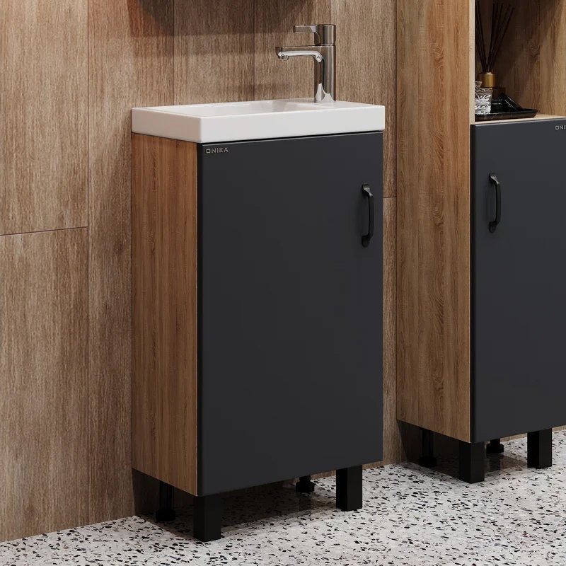 Мебель для ванной комнаты Onika Тимбер 45 напольная, серая матовая, дуб сонома