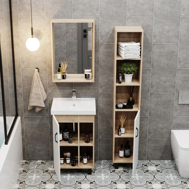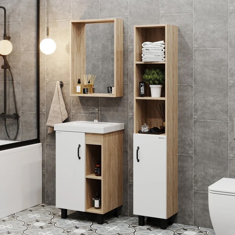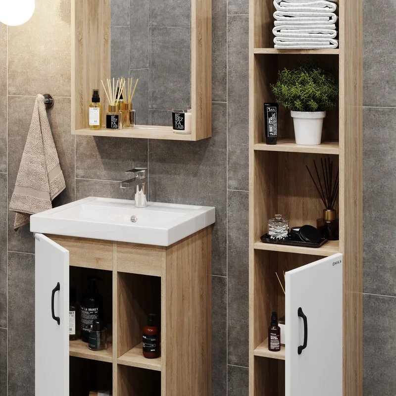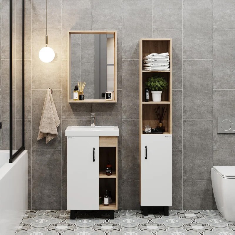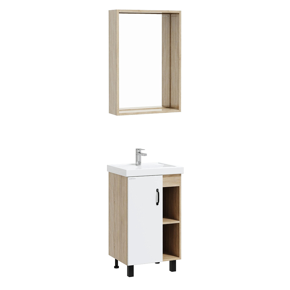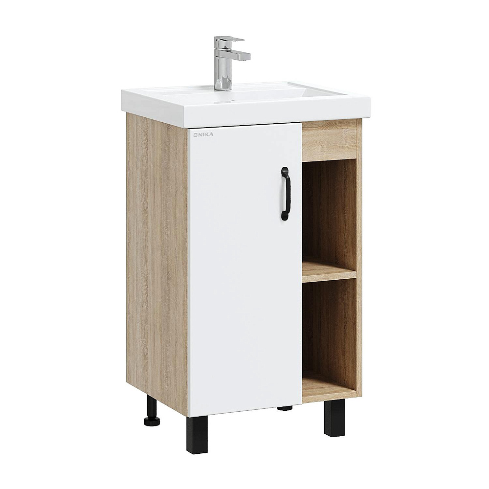Мебель для ванной комнаты Onika Тимбер 50 напольная, белая матовая, дуб сонома