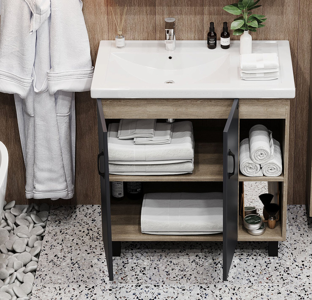 Мебель для ванной комнаты Onika Тимбер 80.10 R, серая, дуб сонома