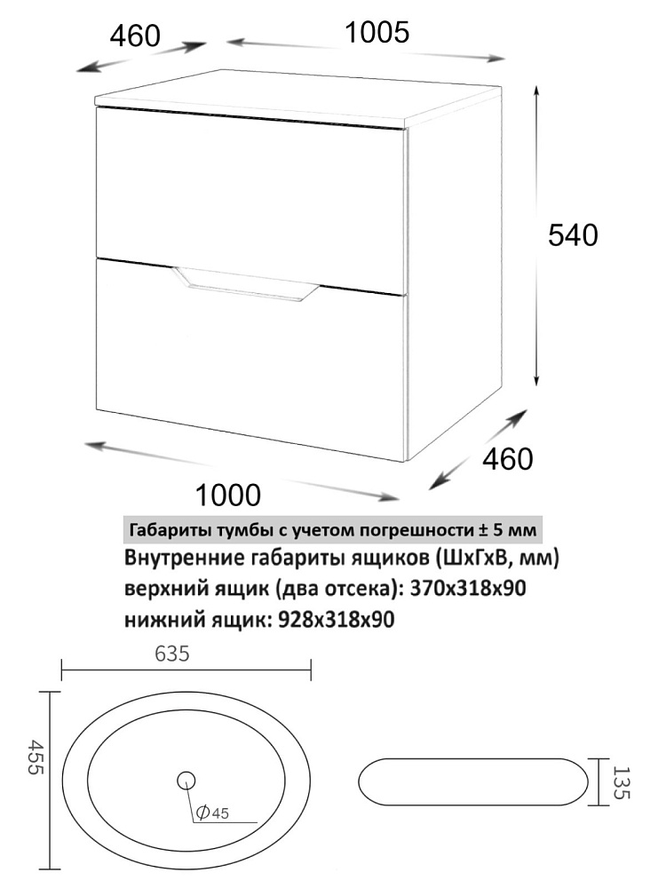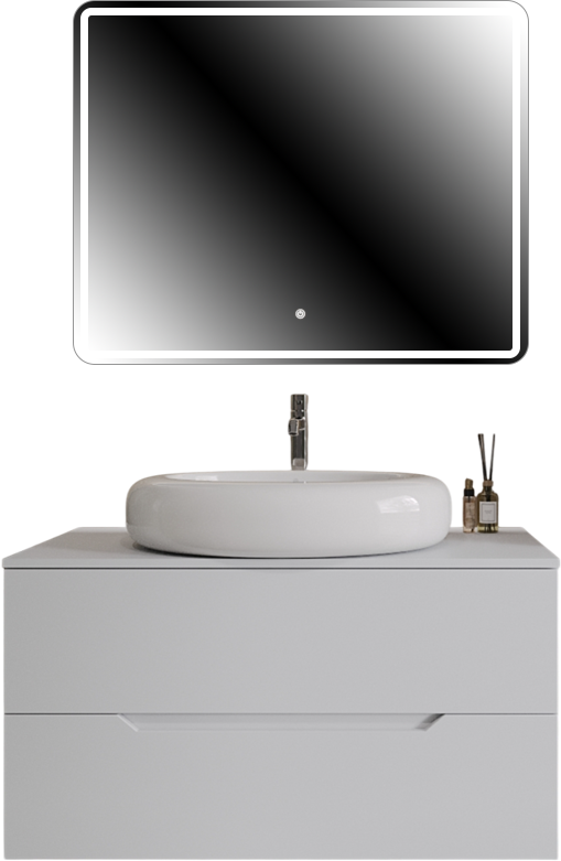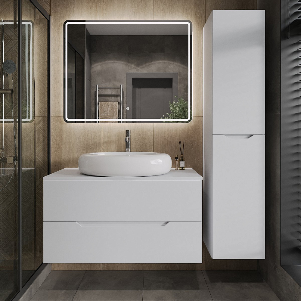 Мебель для ванной комнаты Orange Line 100 подвесная, 2 ящика, матовая белая с раковиной B08-640w