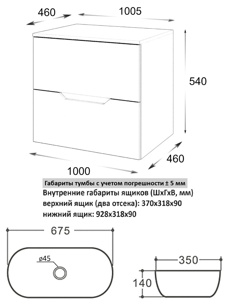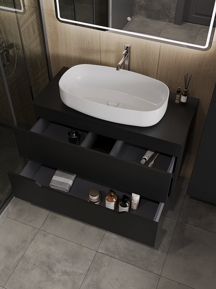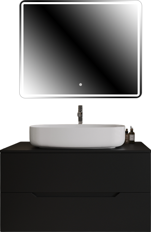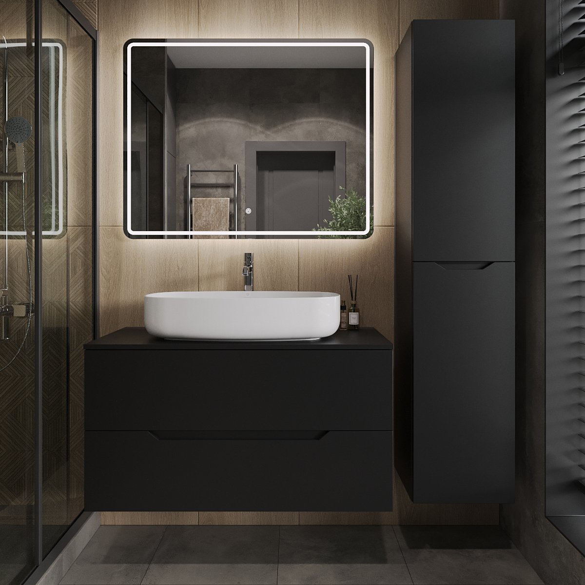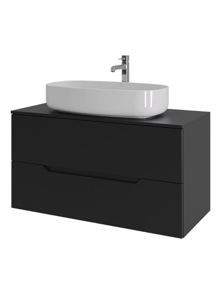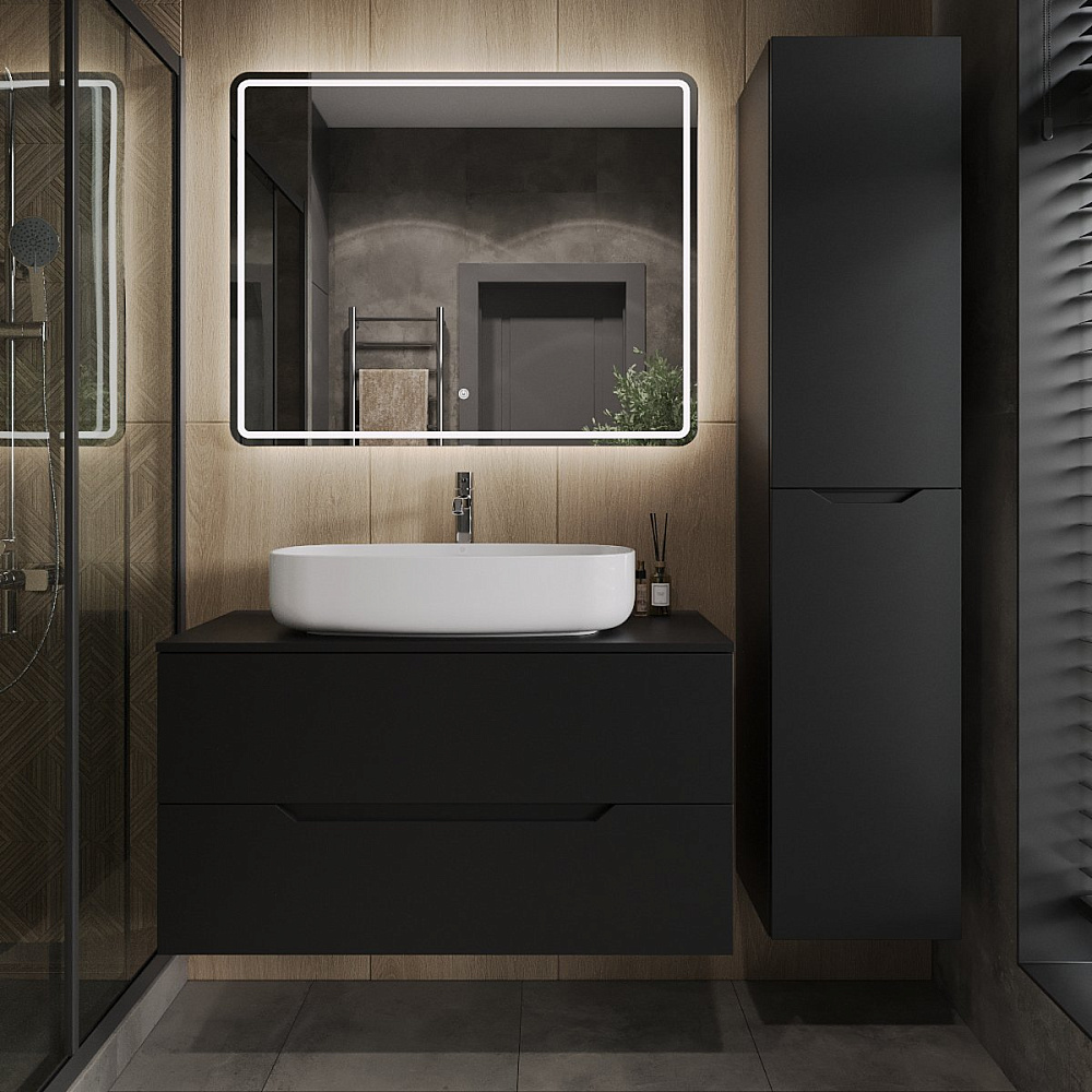 Мебель для ванной комнаты Orange Line 100 подвесная, 2 ящика, матовая черная с раковиной B07-675W