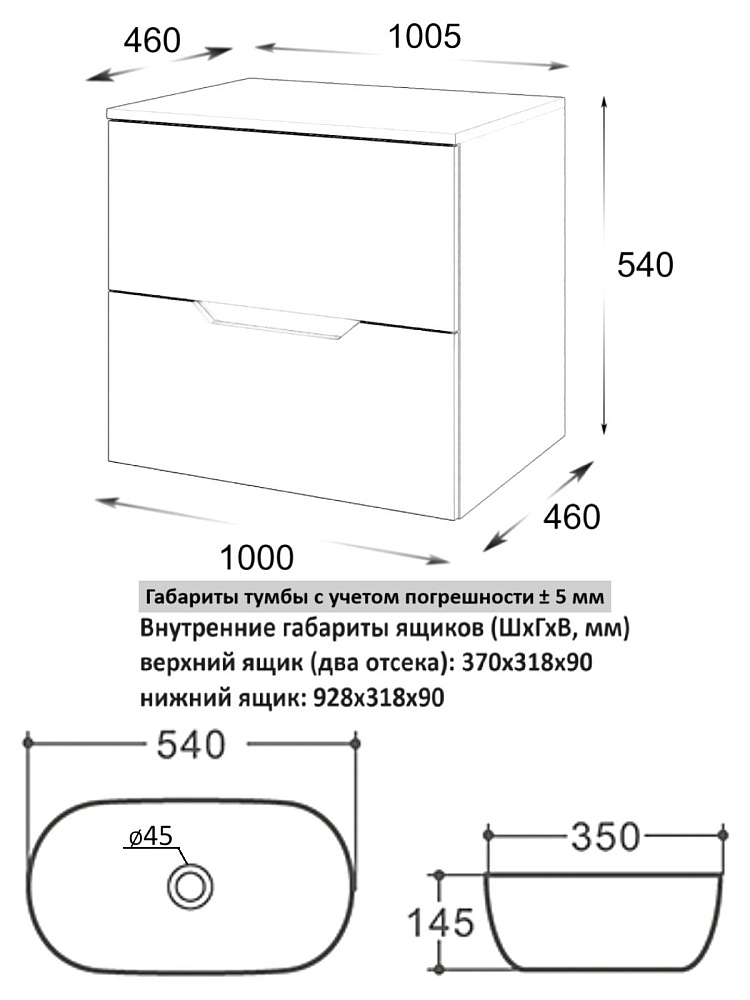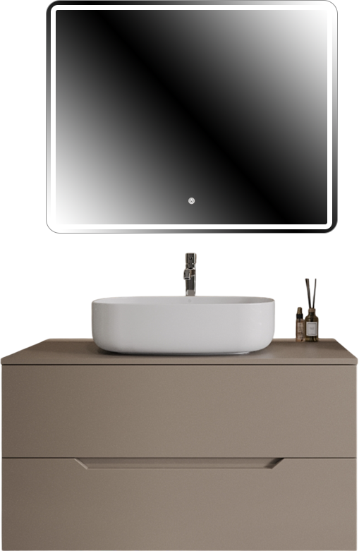 Мебель для ванной комнаты Orange Line 100 подвесная, 2 ящика, матовый латте с раковиной B07-540W