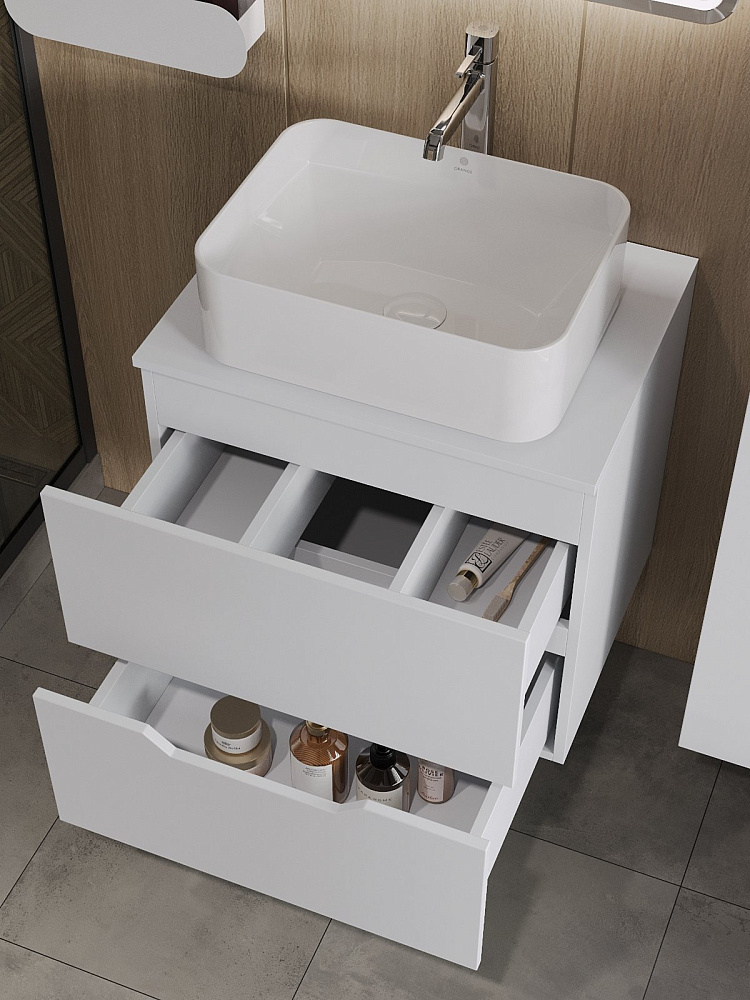Мебель для ванной комнаты Orange Line 60 подвесная, 2 ящика, матовая белая с раковиной B02-460W