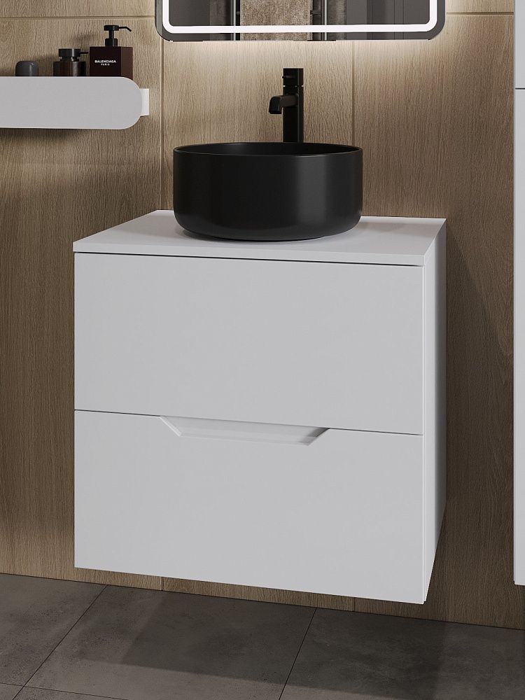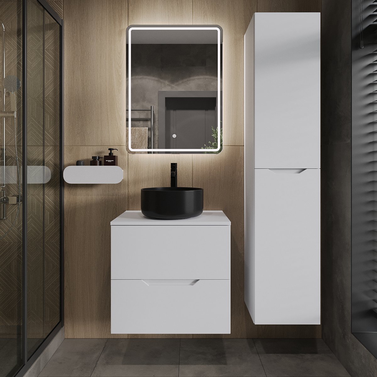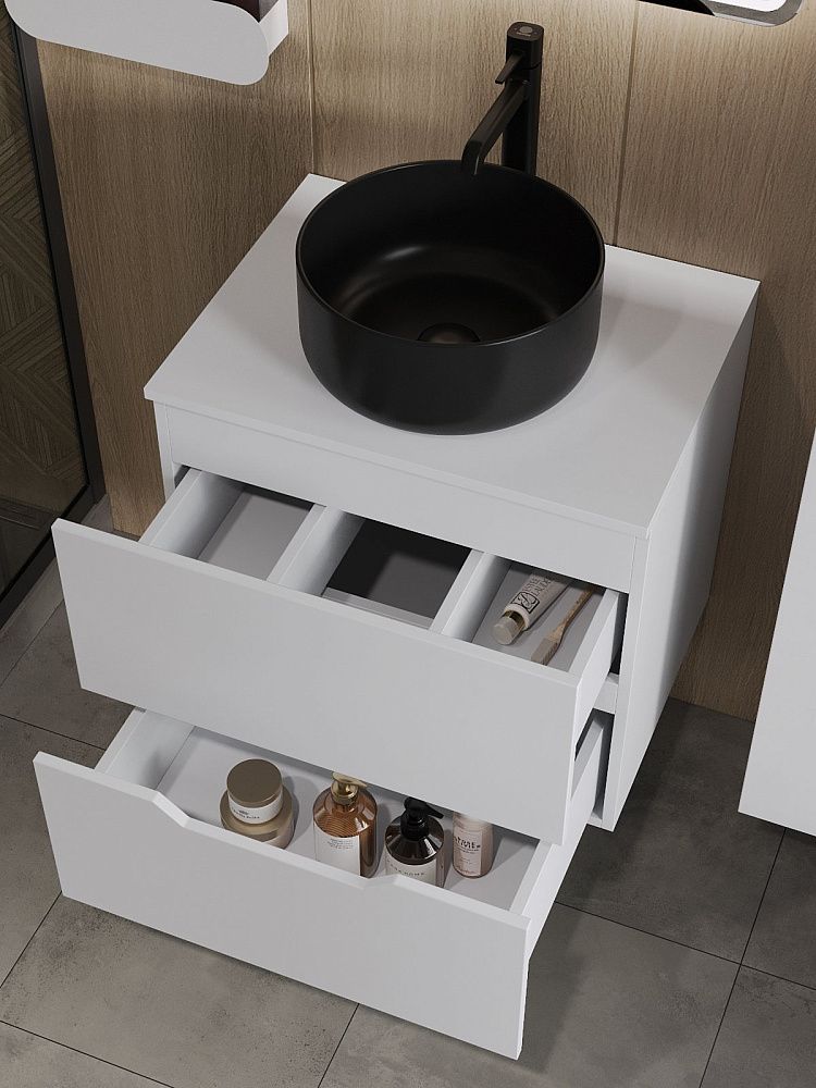 Мебель для ванной комнаты Orange Line 60 подвесная, 2 ящика, матовая белая с раковиной B07-345B
