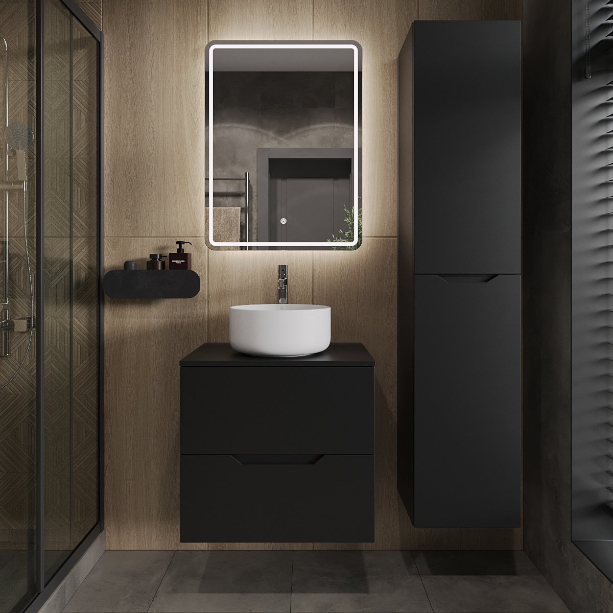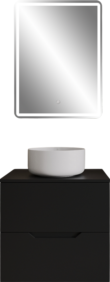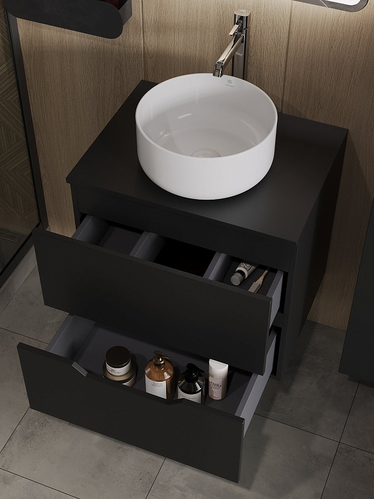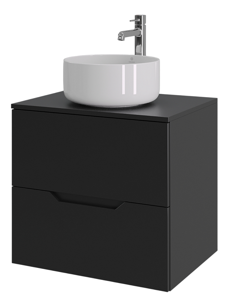 Мебель для ванной комнаты Orange Line 60 подвесная, 2 ящика, матовая черная с раковиной B07-345W