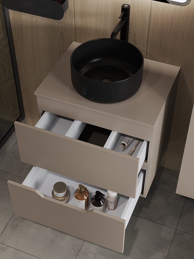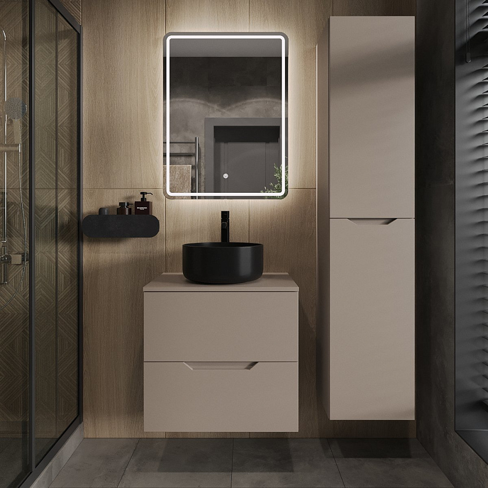 Мебель для ванной комнаты Orange Line 60 подвесная, 2 ящика, матовый латте с раковиной B07-345B