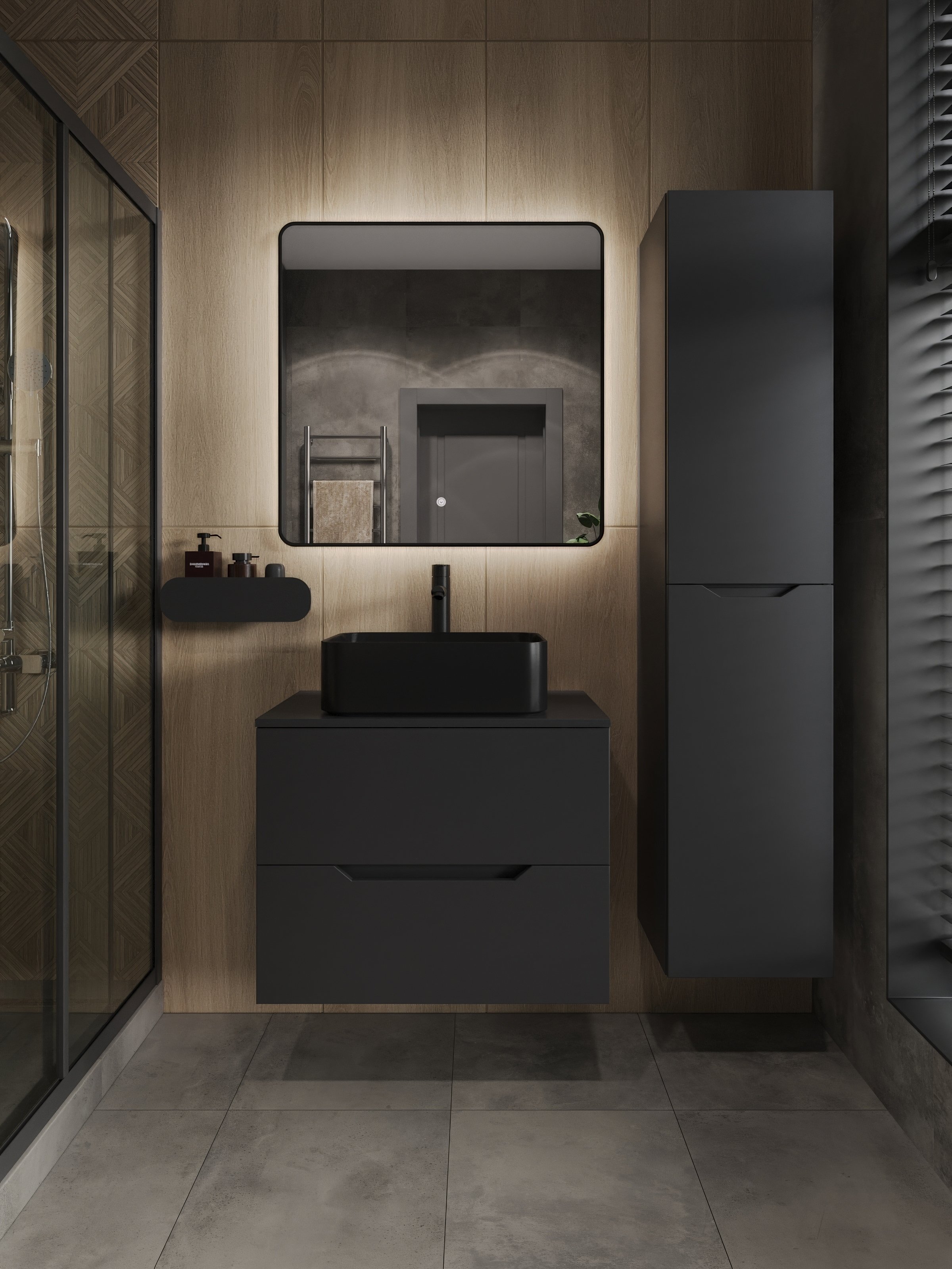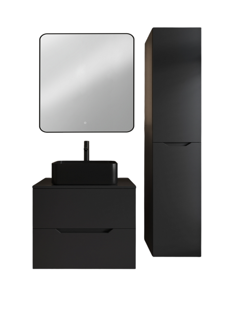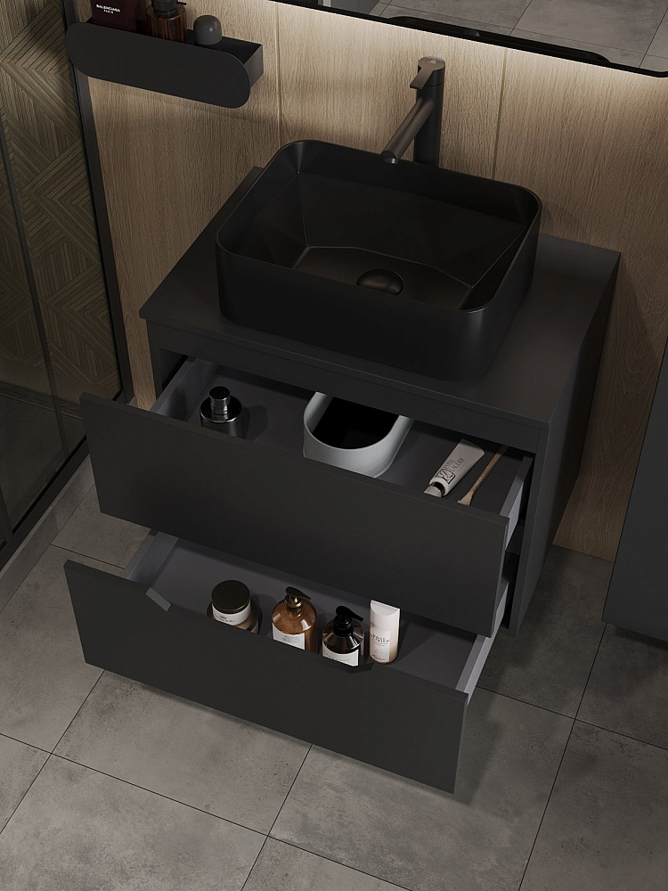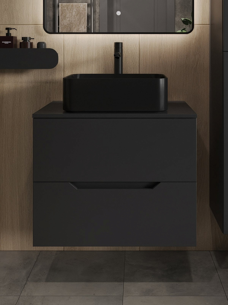 Мебель для ванной комнаты Orange Line 70 подвесная, 2 ящика, матовая черная с раковиной B02-460MB