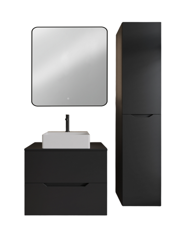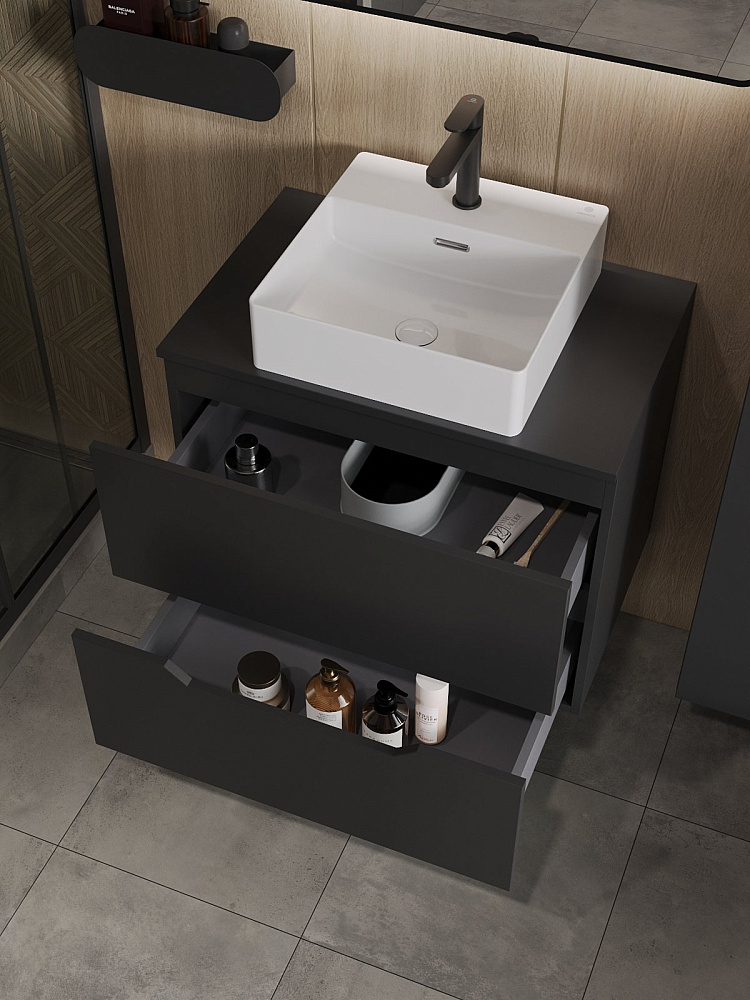 Мебель для ванной комнаты Orange Line 70 подвесная, 2 ящика, матовая черная с раковиной B04-405W