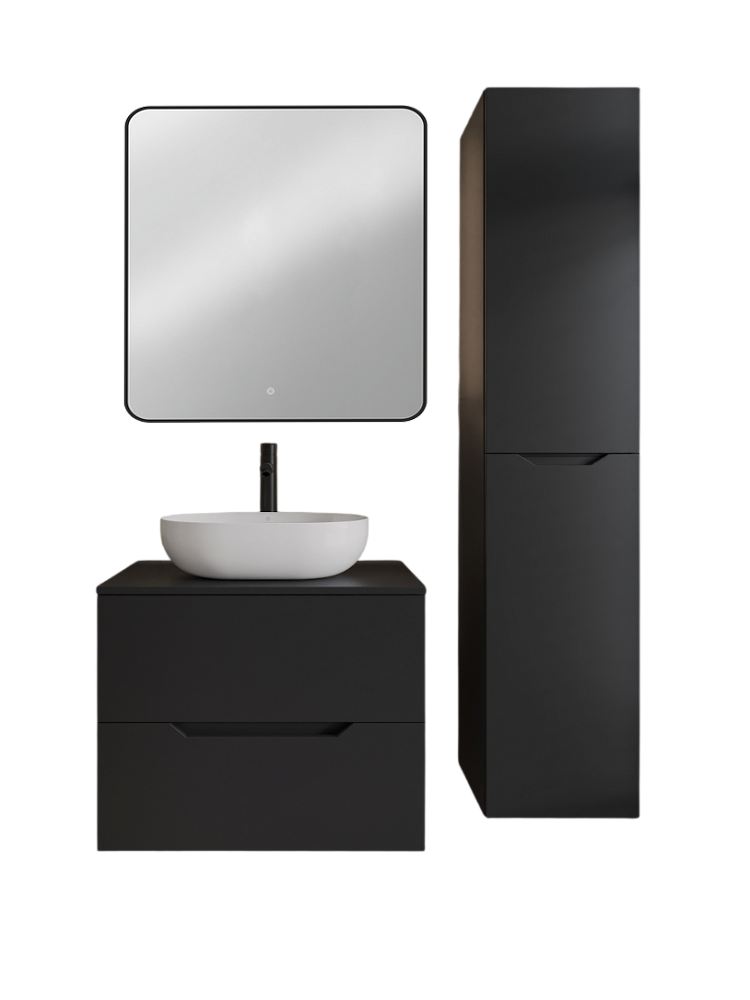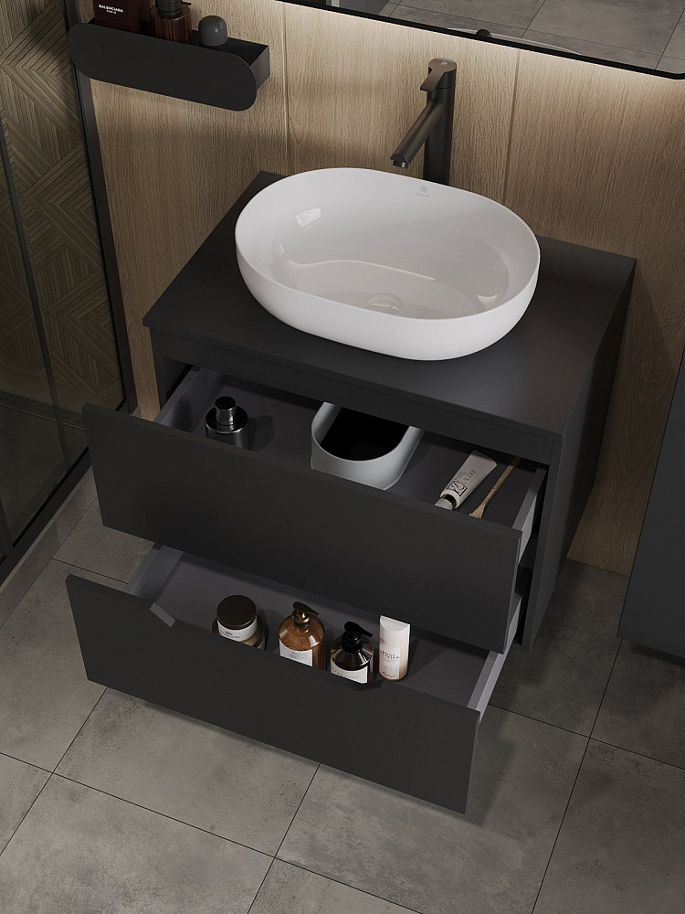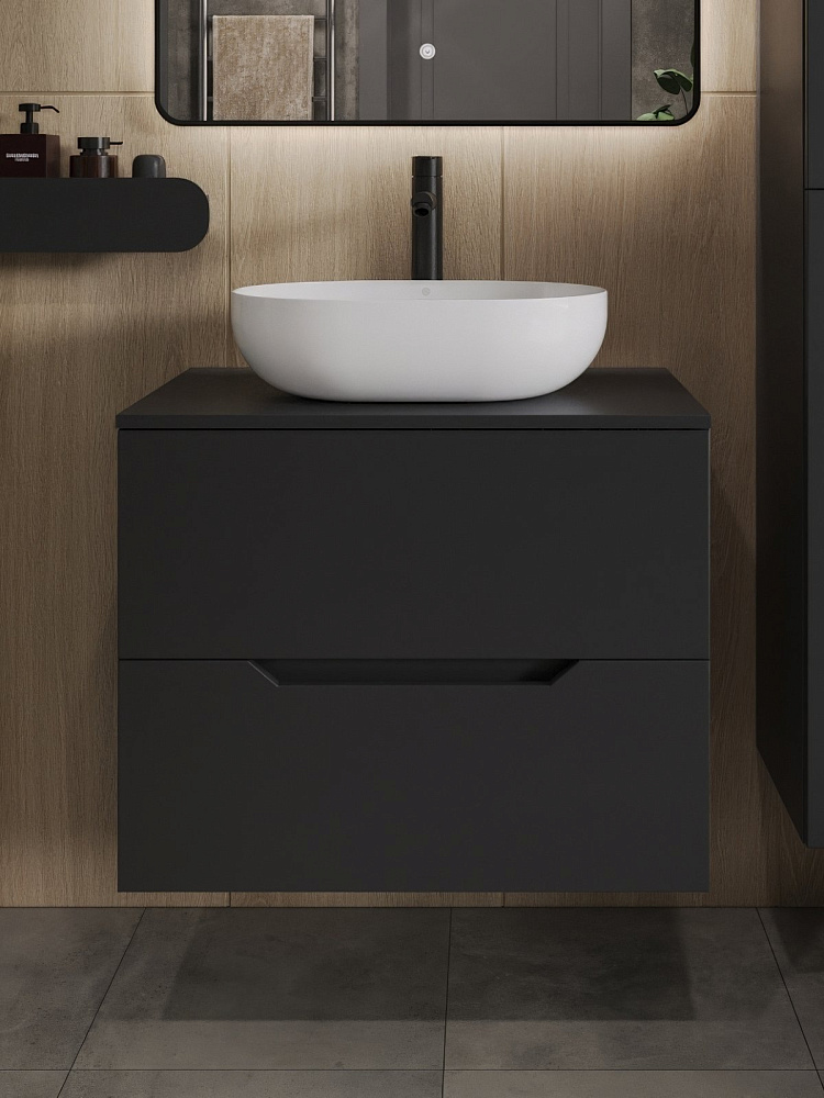 Мебель для ванной комнаты Orange Line 70 подвесная, 2 ящика, матовая черная с раковиной B05-480W