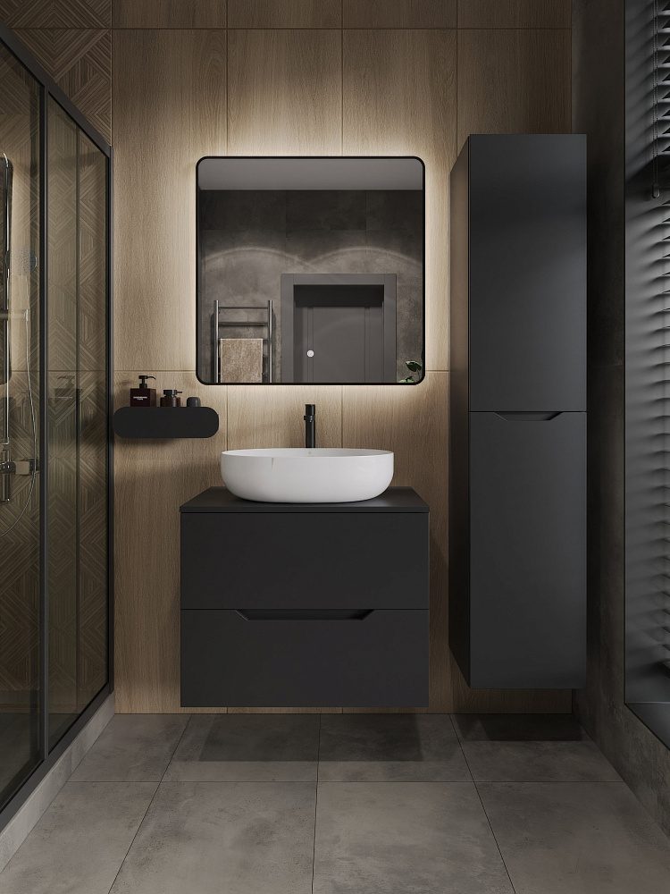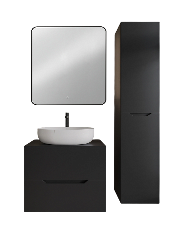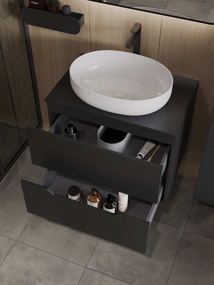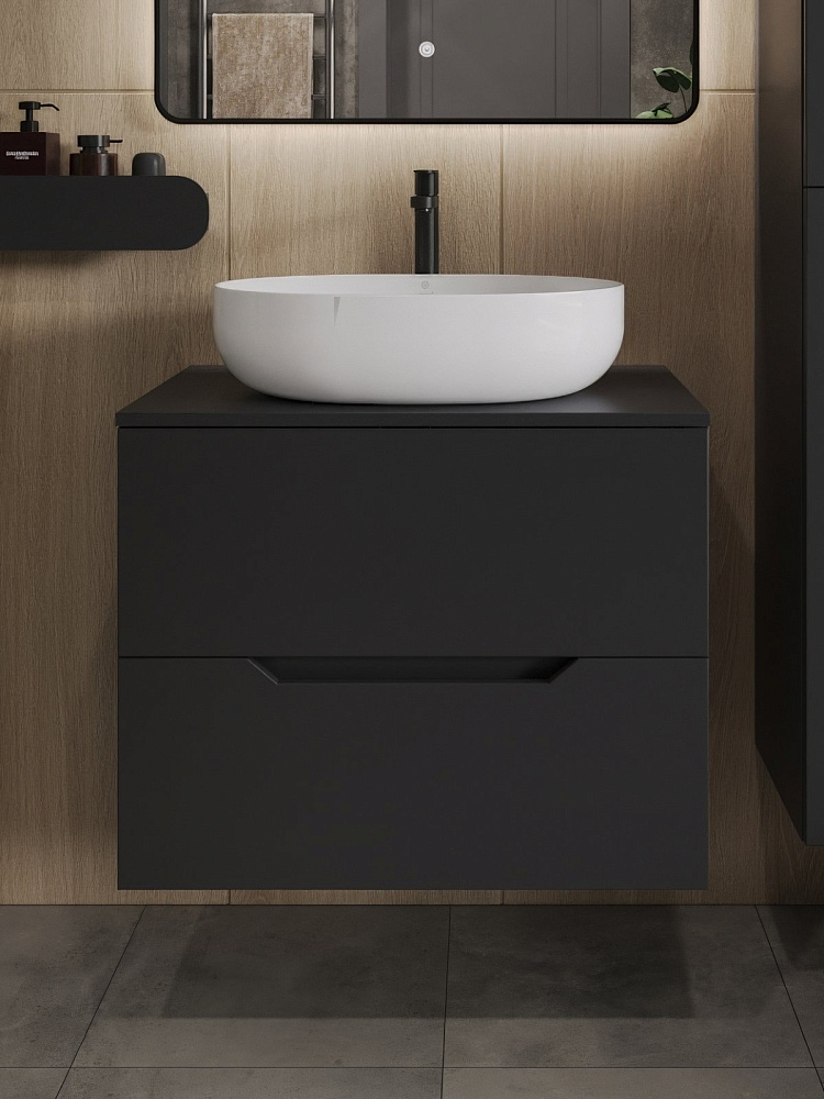 Мебель для ванной комнаты Orange Line 70 подвесная, 2 ящика, матовая черная с раковиной B05-520W