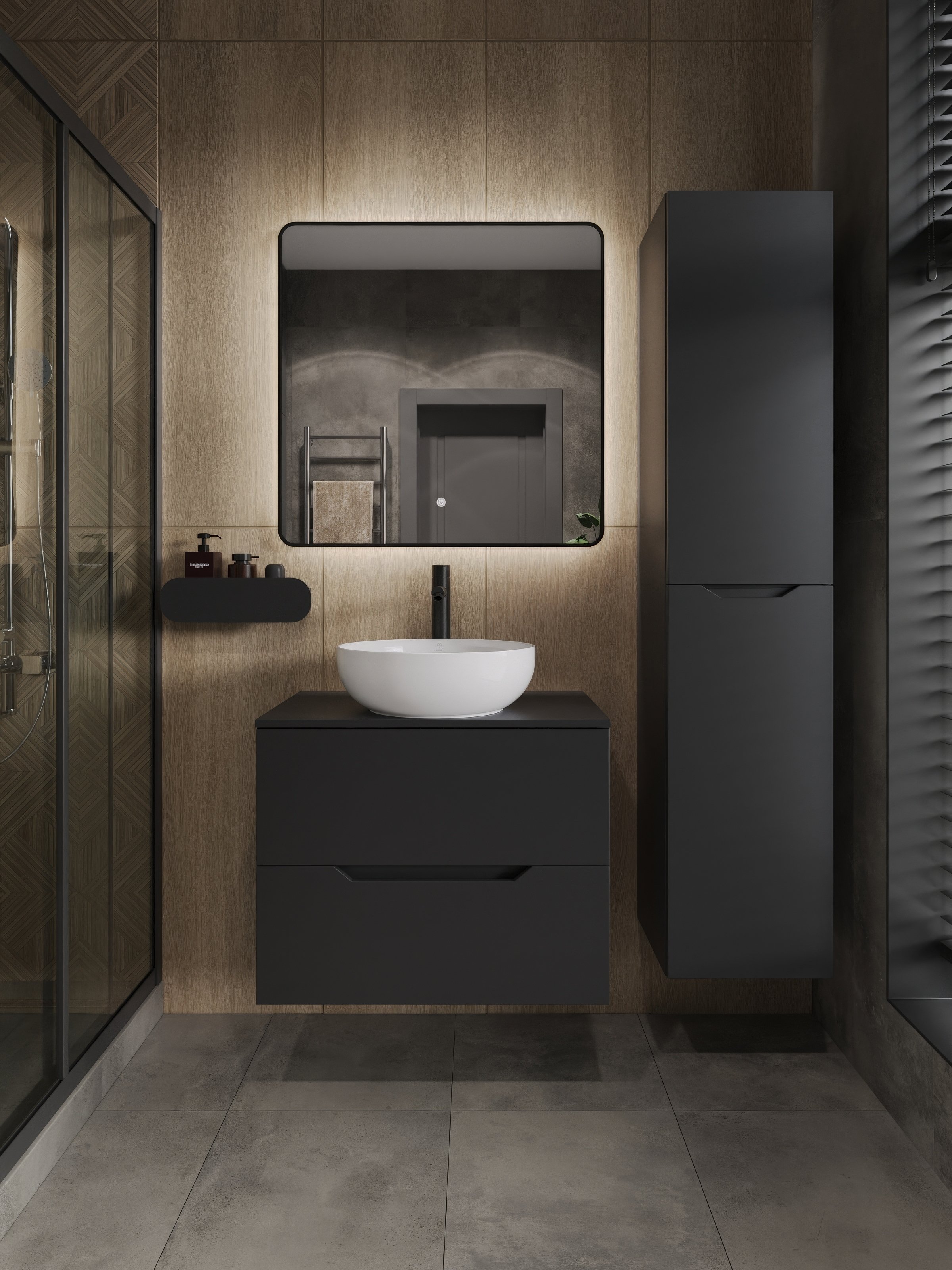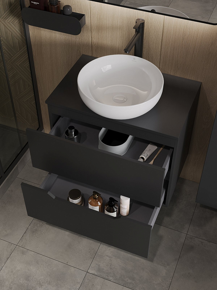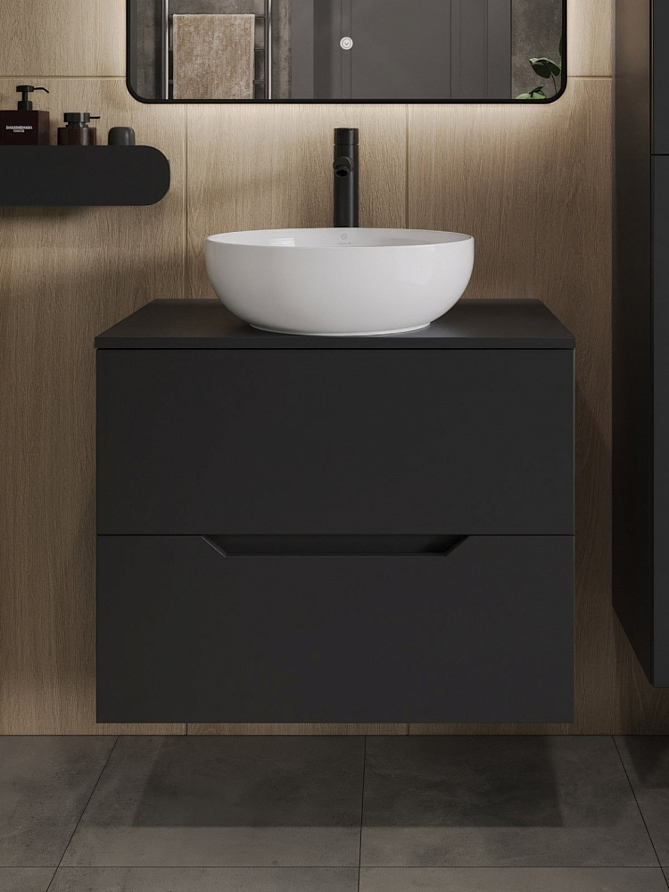 Мебель для ванной комнаты Orange Line 70 подвесная, 2 ящика, матовая черная с раковиной B07-420W
