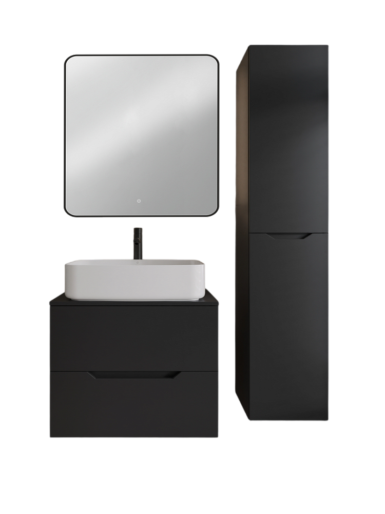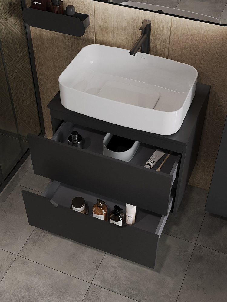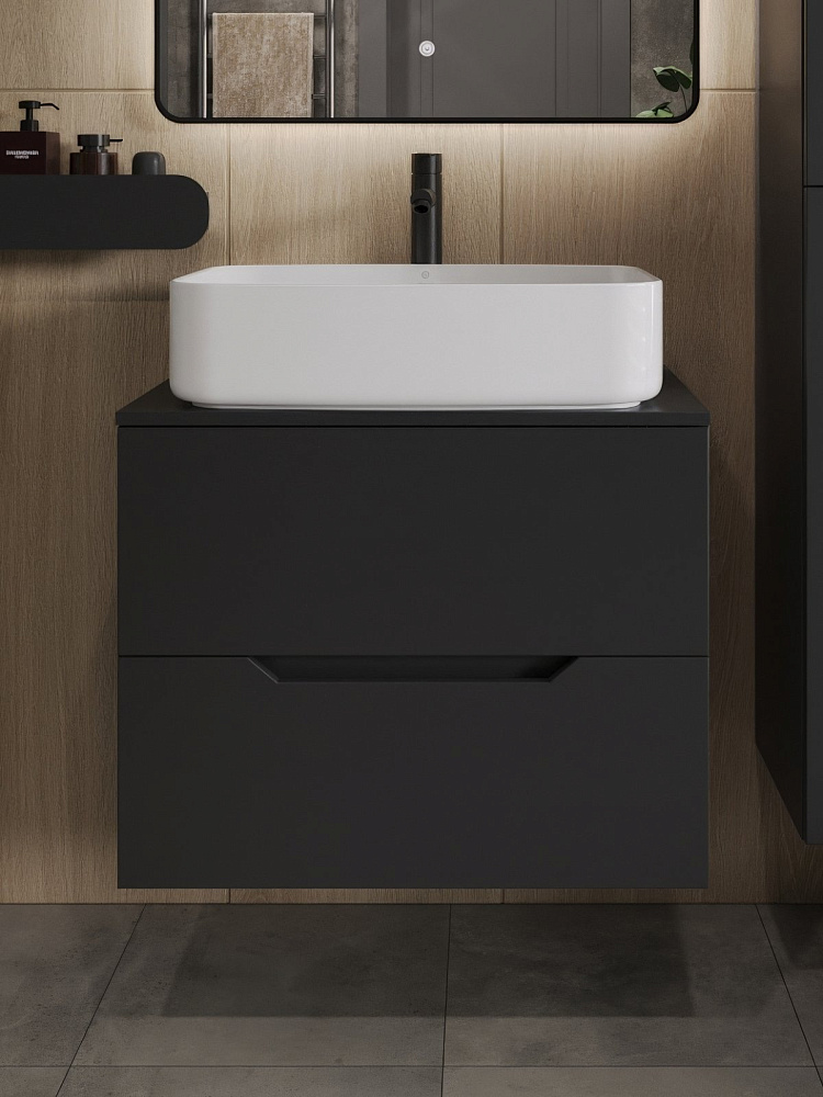 Мебель для ванной комнаты Orange Line 70 подвесная, 2 ящика, матовая черная с раковиной B07-600W