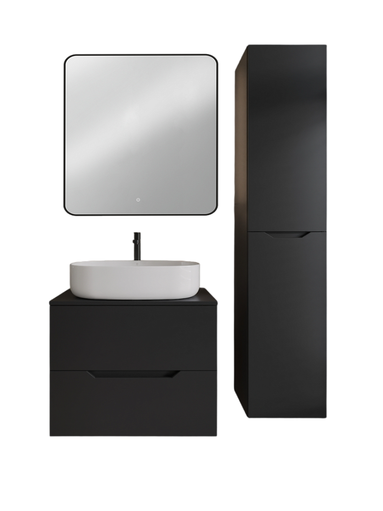 Мебель для ванной комнаты Orange Line 70 подвесная, 2 ящика, матовая черная с раковиной B08-600W