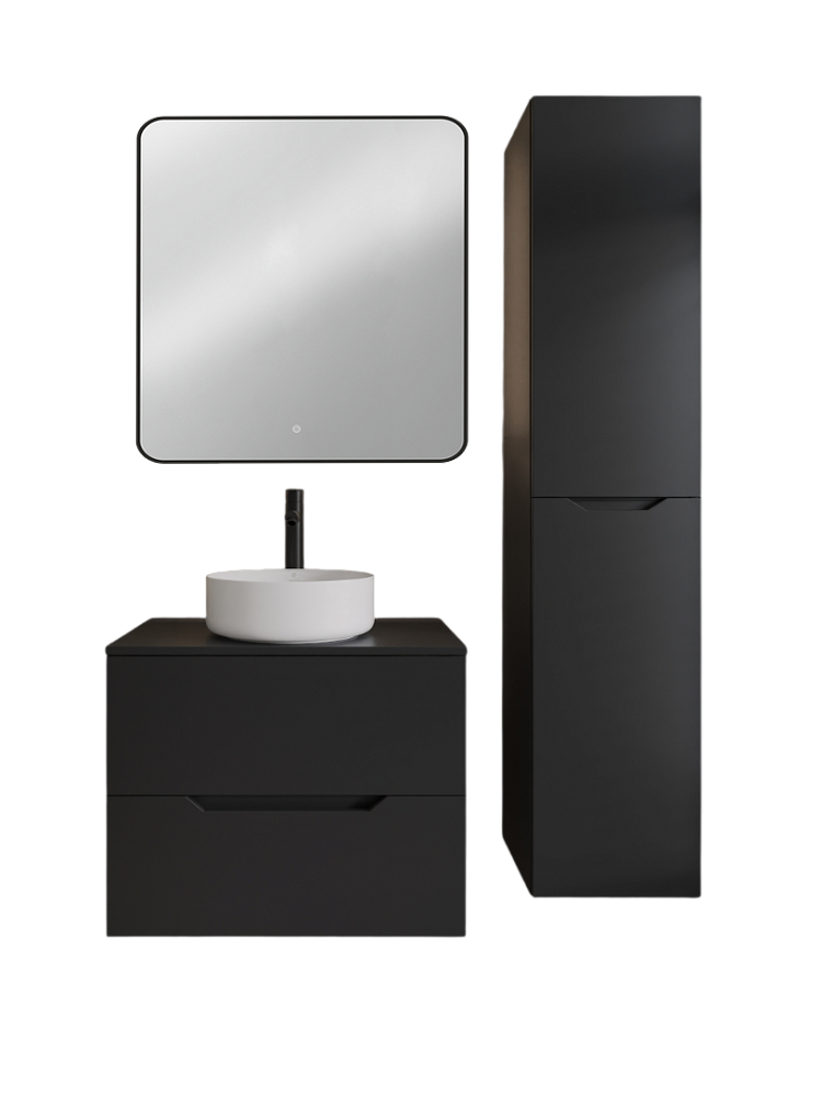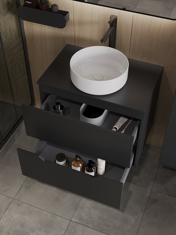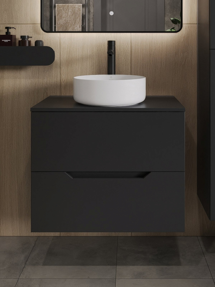 Мебель для ванной комнаты Orange Line 70 подвесная, 2 ящика, матовая черная с раковиной B09-360W