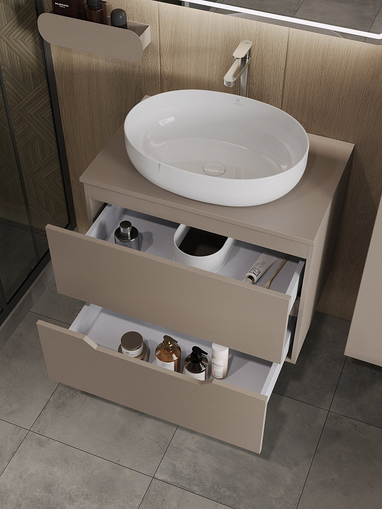 Мебель для ванной комнаты Orange Line 70 подвесная, 2 ящика, матовый латте с раковиной B05-520W