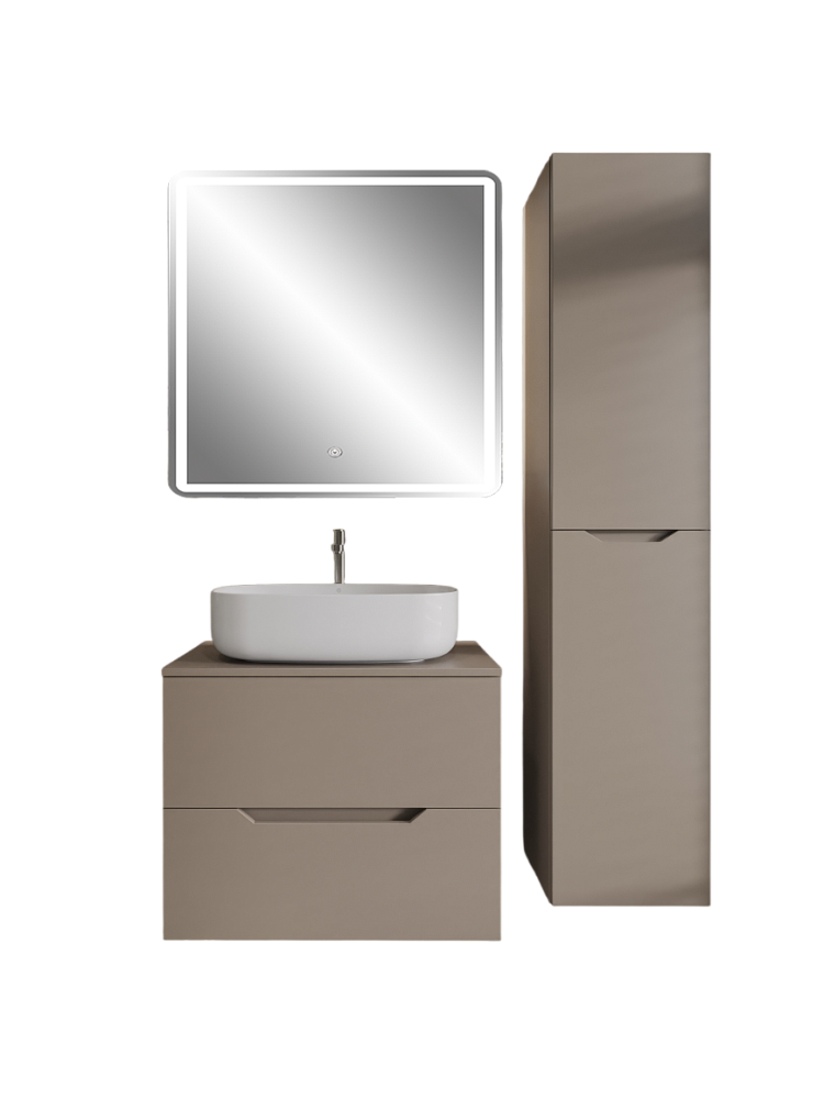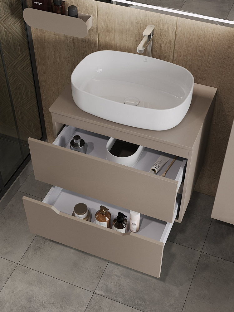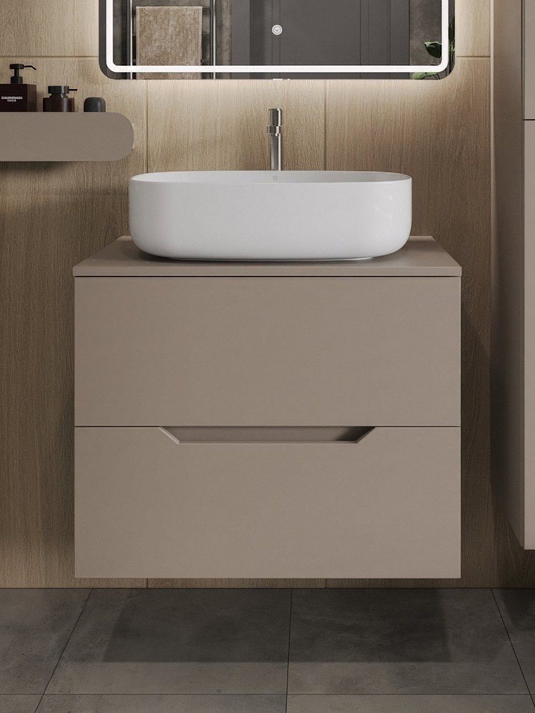 Мебель для ванной комнаты Orange Line 70 подвесная, 2 ящика, матовый латте с раковиной B07-540W