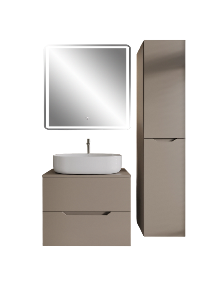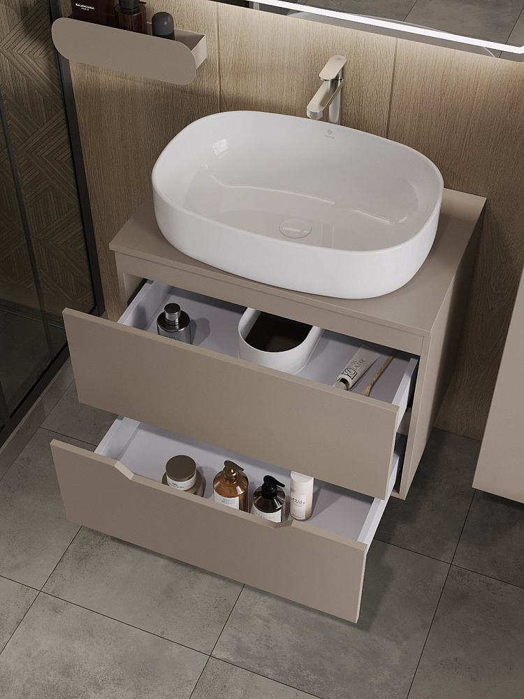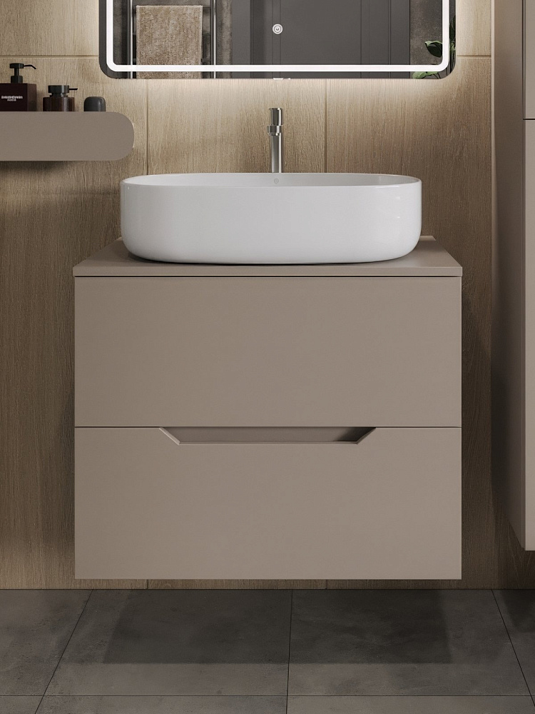 Мебель для ванной комнаты Orange Line 70 подвесная, 2 ящика, матовый латте с раковиной B08-600W