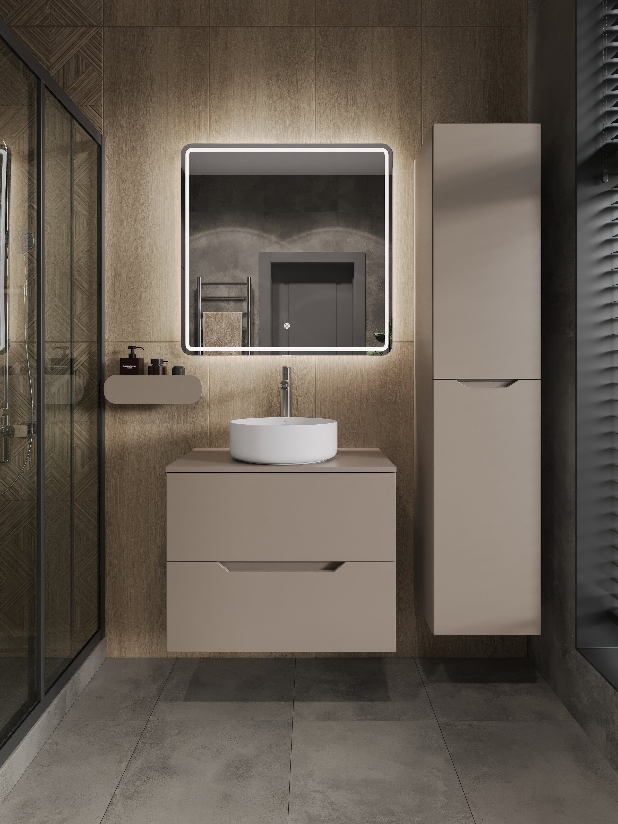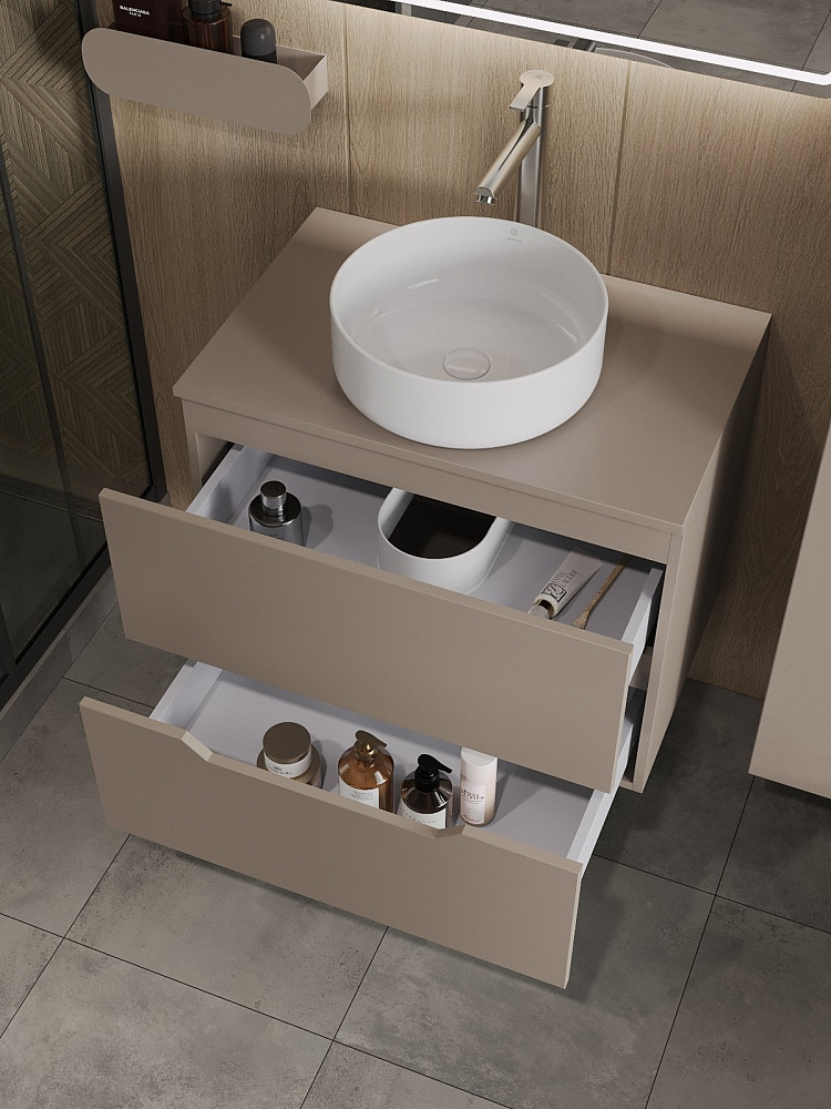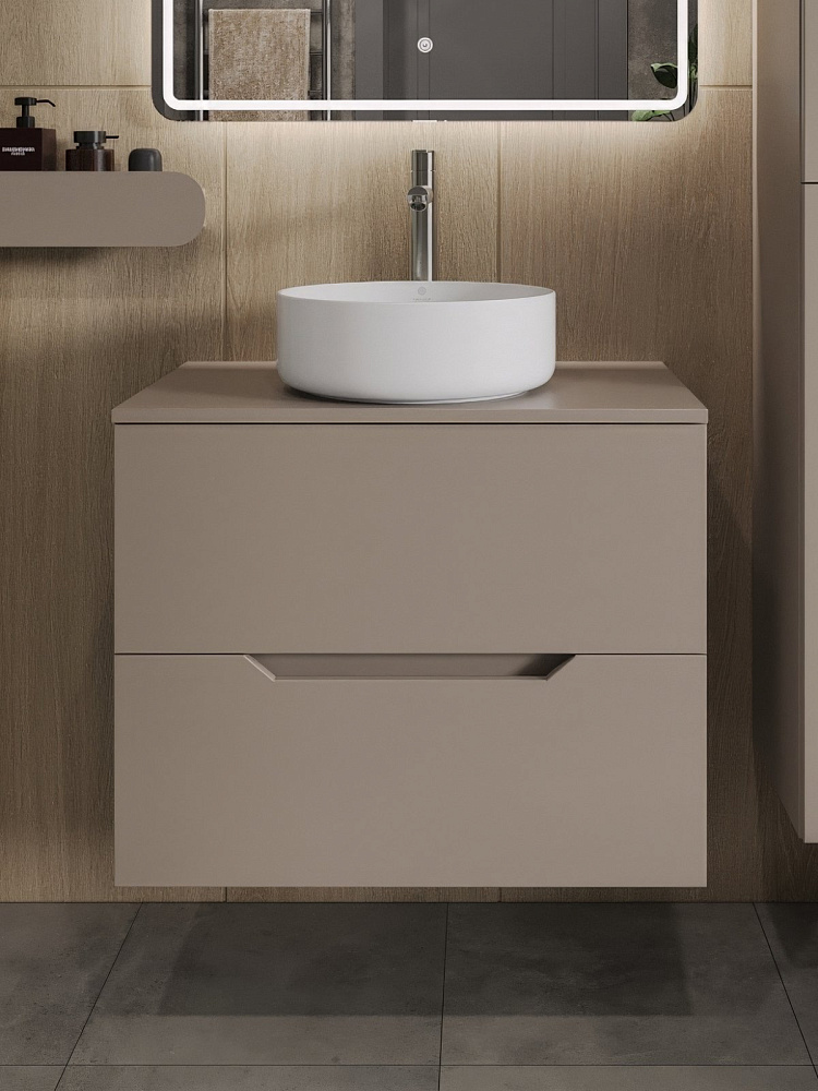 Мебель для ванной комнаты Orange Line 70 подвесная, 2 ящика, матовый латте с раковиной B09-360W