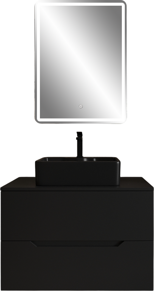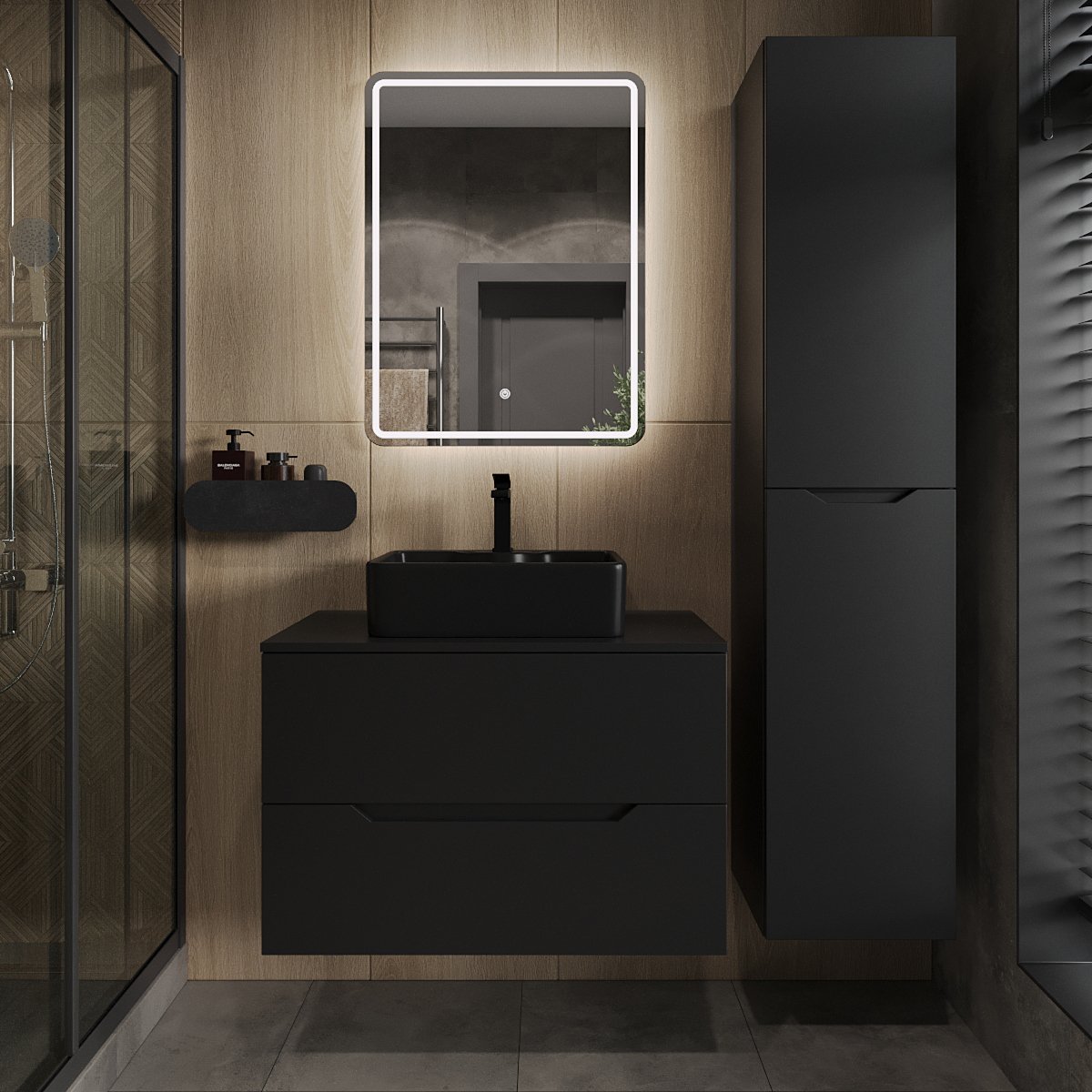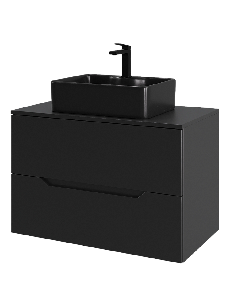 Мебель для ванной комнаты Orange Line 80 подвесная, 2 ящика, матовая черная с раковиной B01-475mb