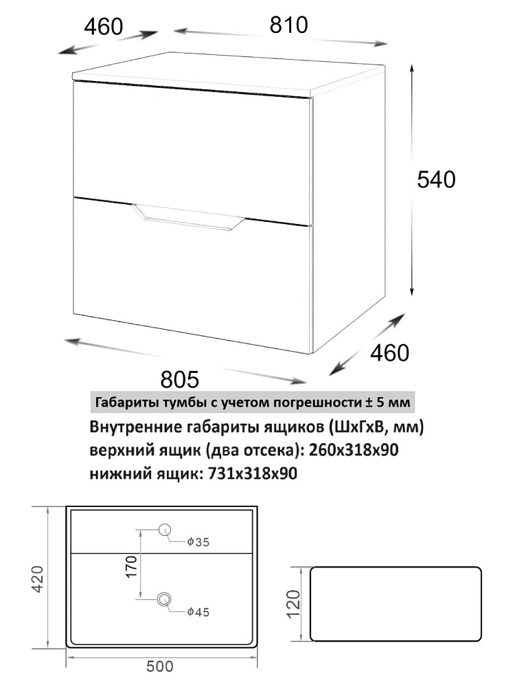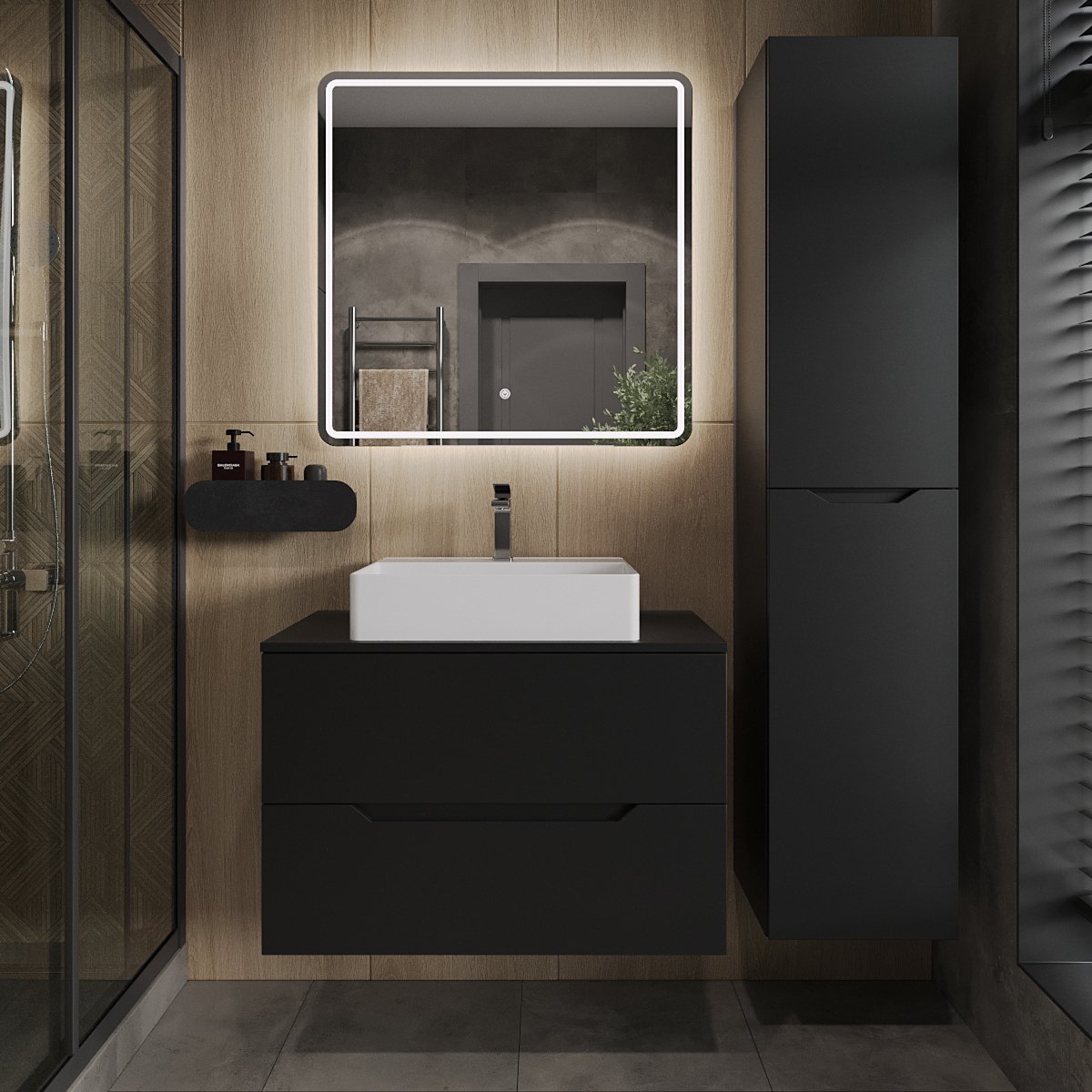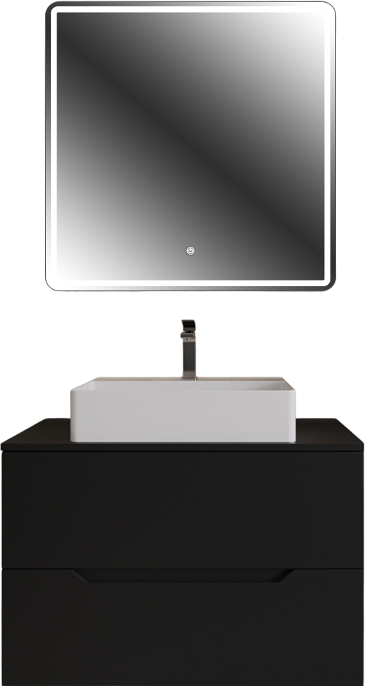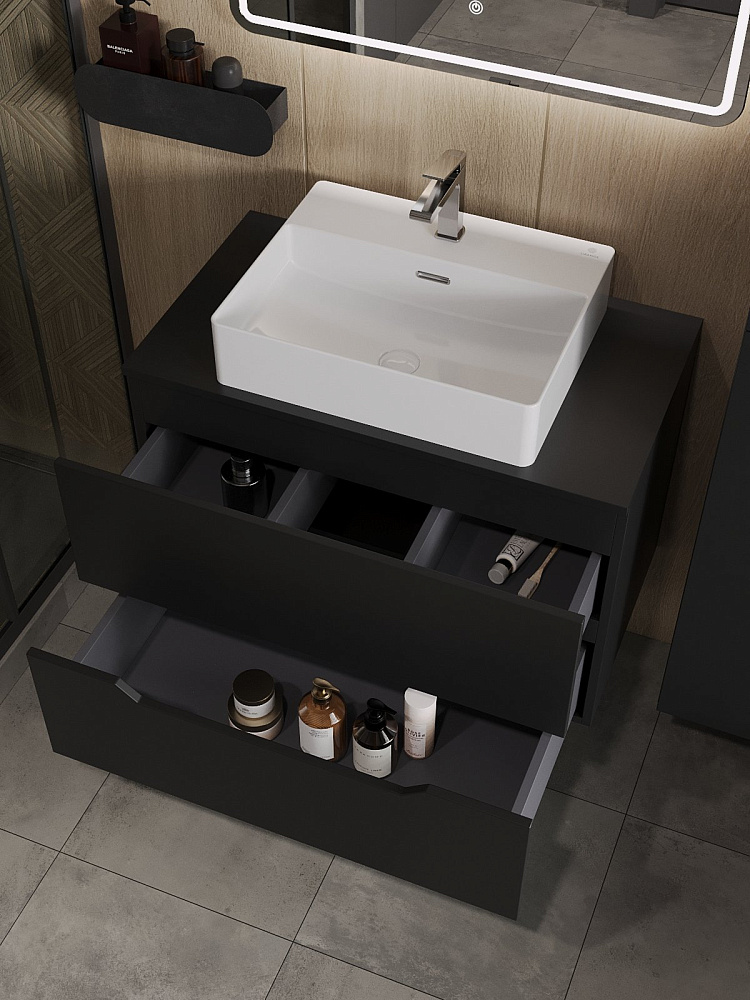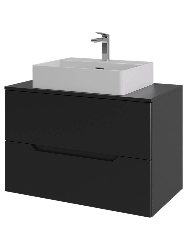Мебель для ванной комнаты Orange Line 80 подвесная, 2 ящика, матовая черная с раковиной B04-500W