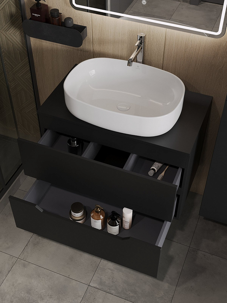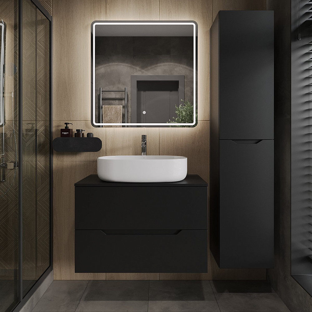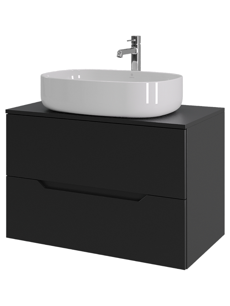 Мебель для ванной комнаты Orange Line 80 подвесная, 2 ящика, матовая черная с раковиной B04-600W