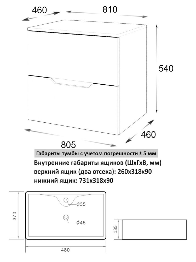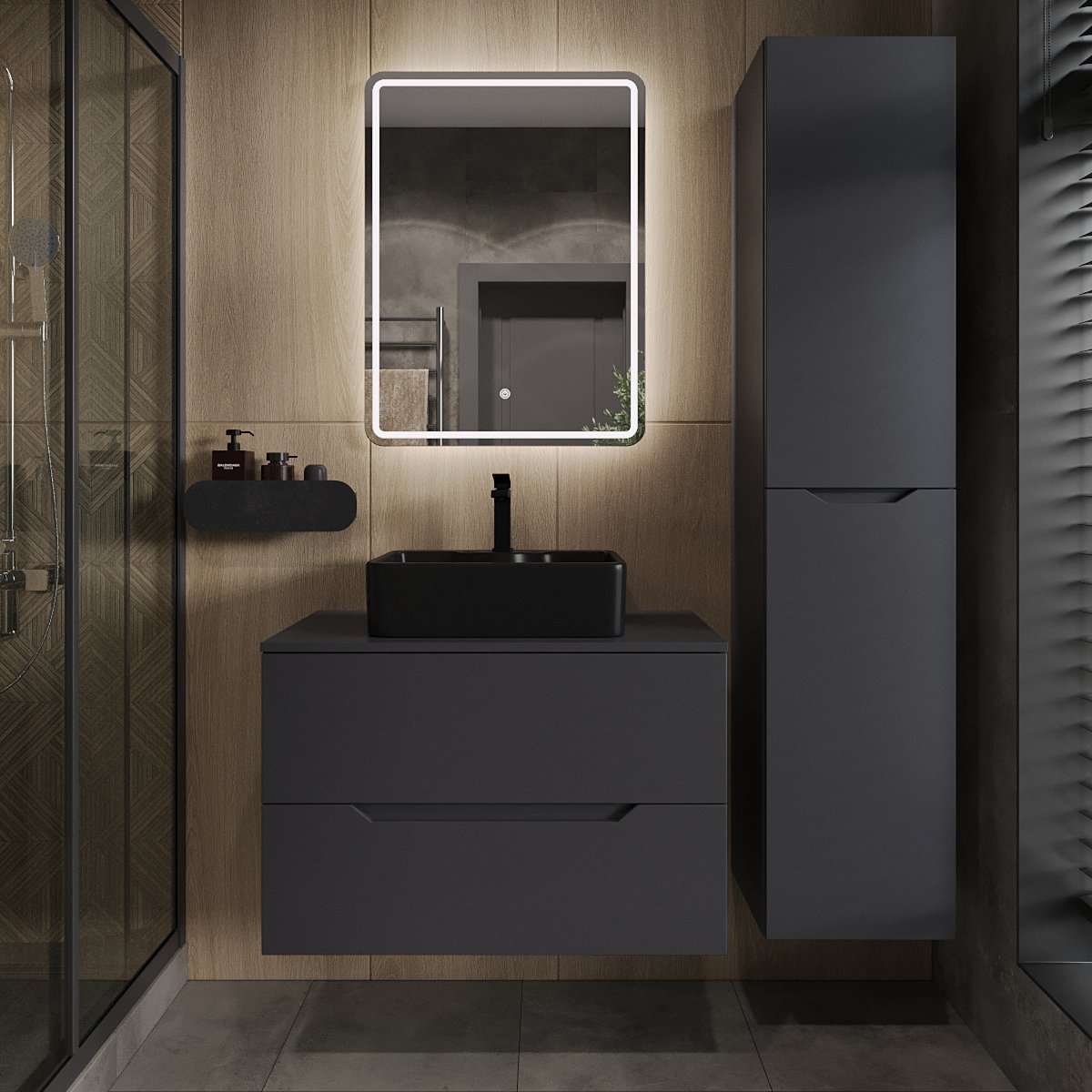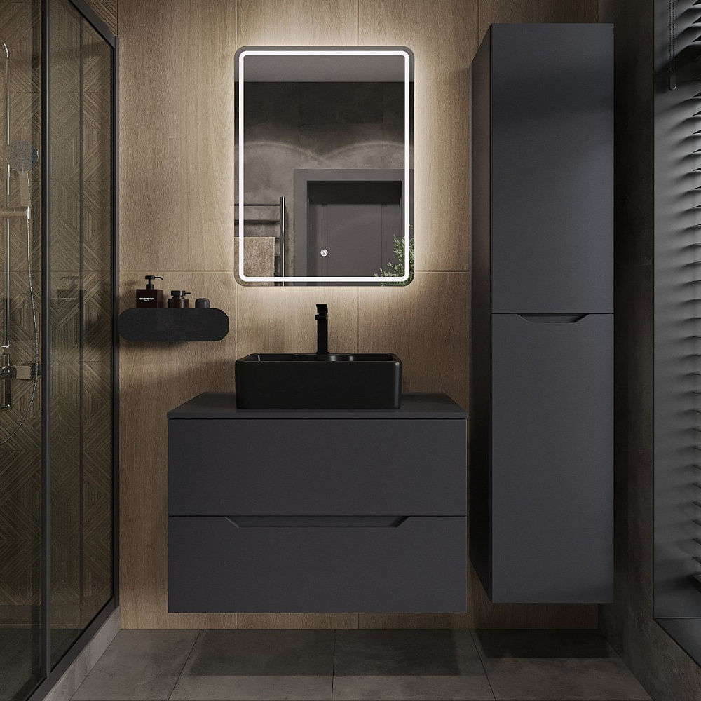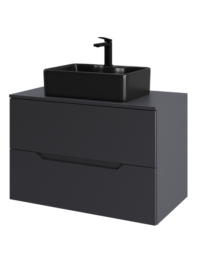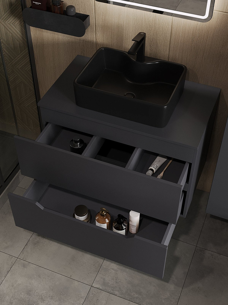 Мебель для ванной комнаты Orange Line 80 подвесная, 2 ящика, матовый графит с раковиной B01-475mb
