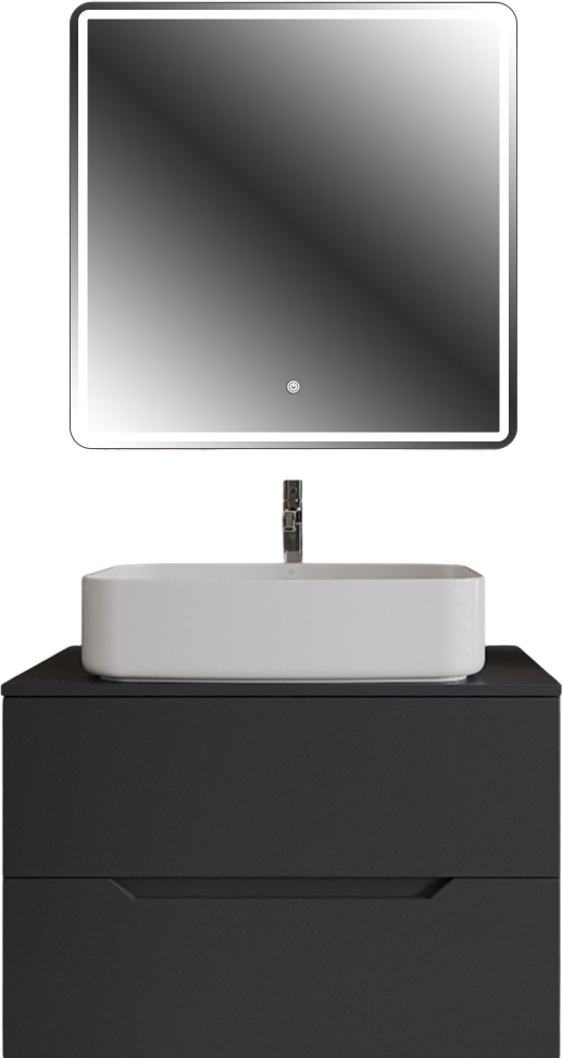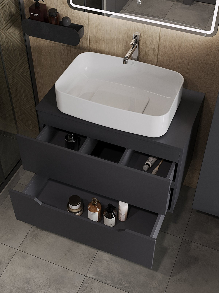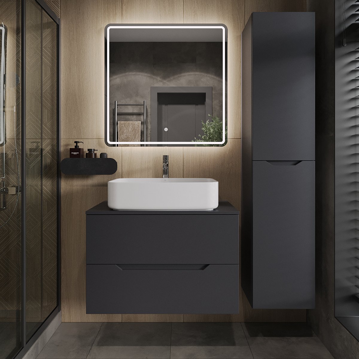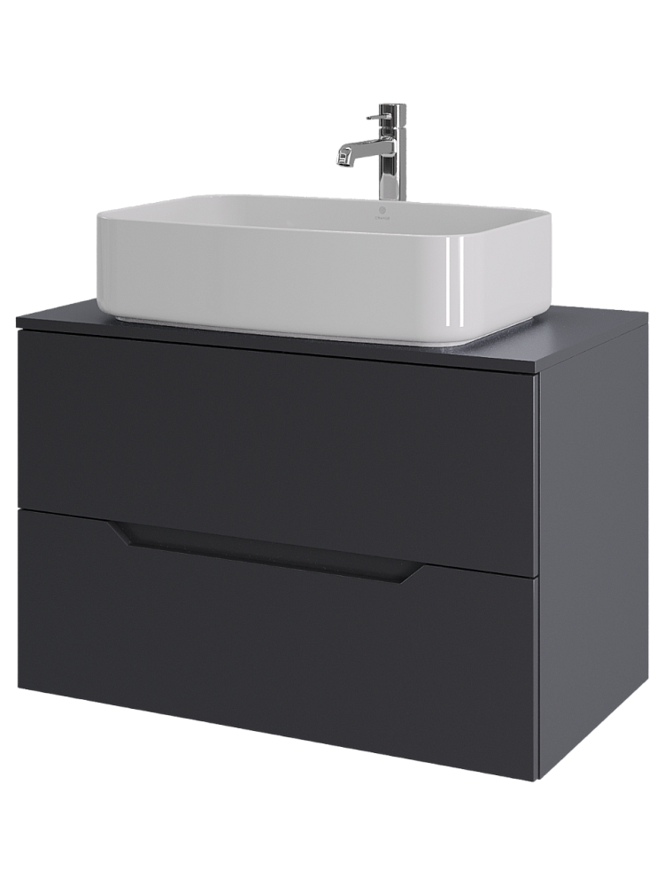 Мебель для ванной комнаты Orange Line 80 подвесная, 2 ящика, матовый графит с раковиной B07-600W