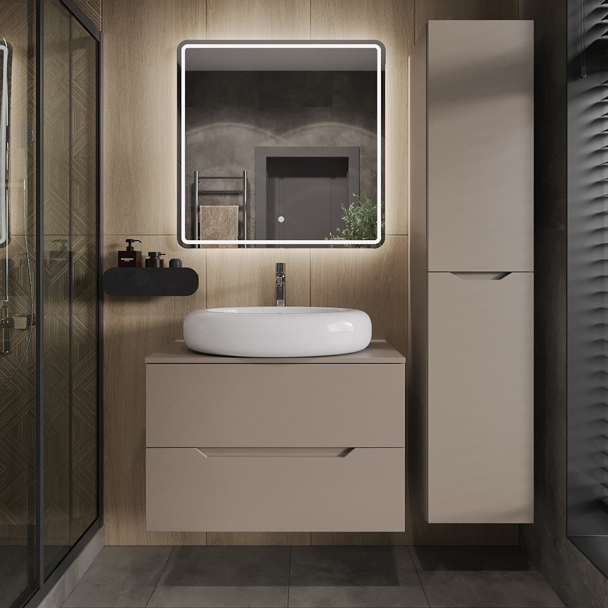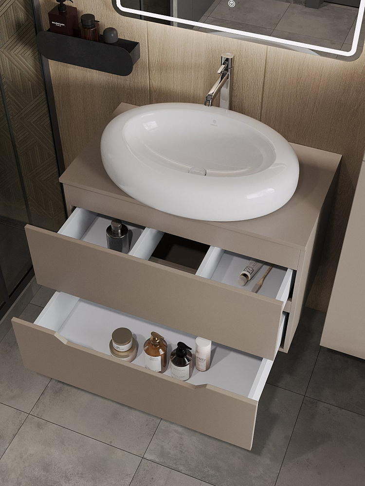 Мебель для ванной комнаты Orange Line 80 подвесная, 2 ящика, матовый латте с раковиной B08-640w