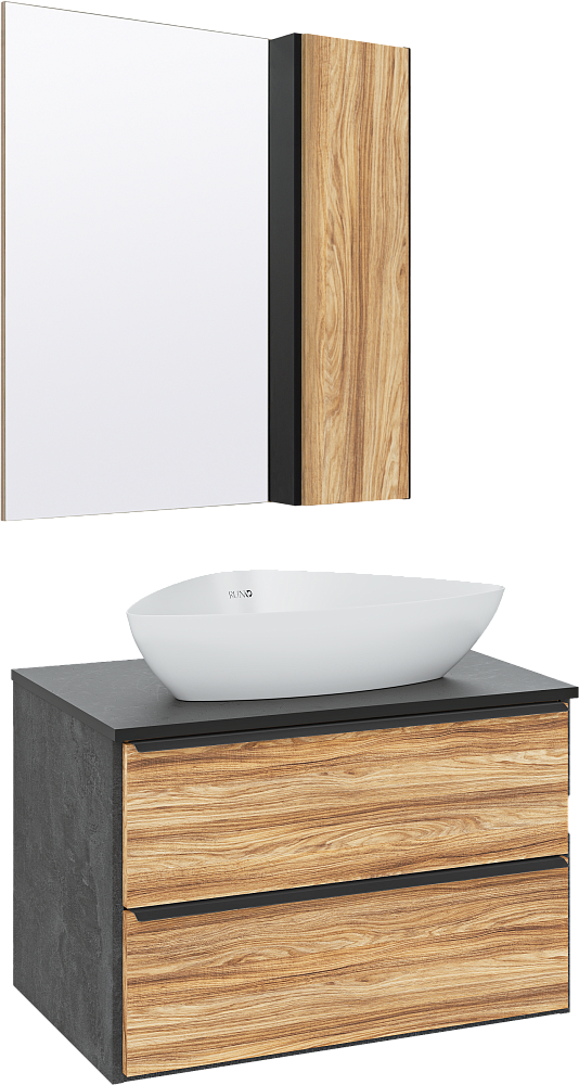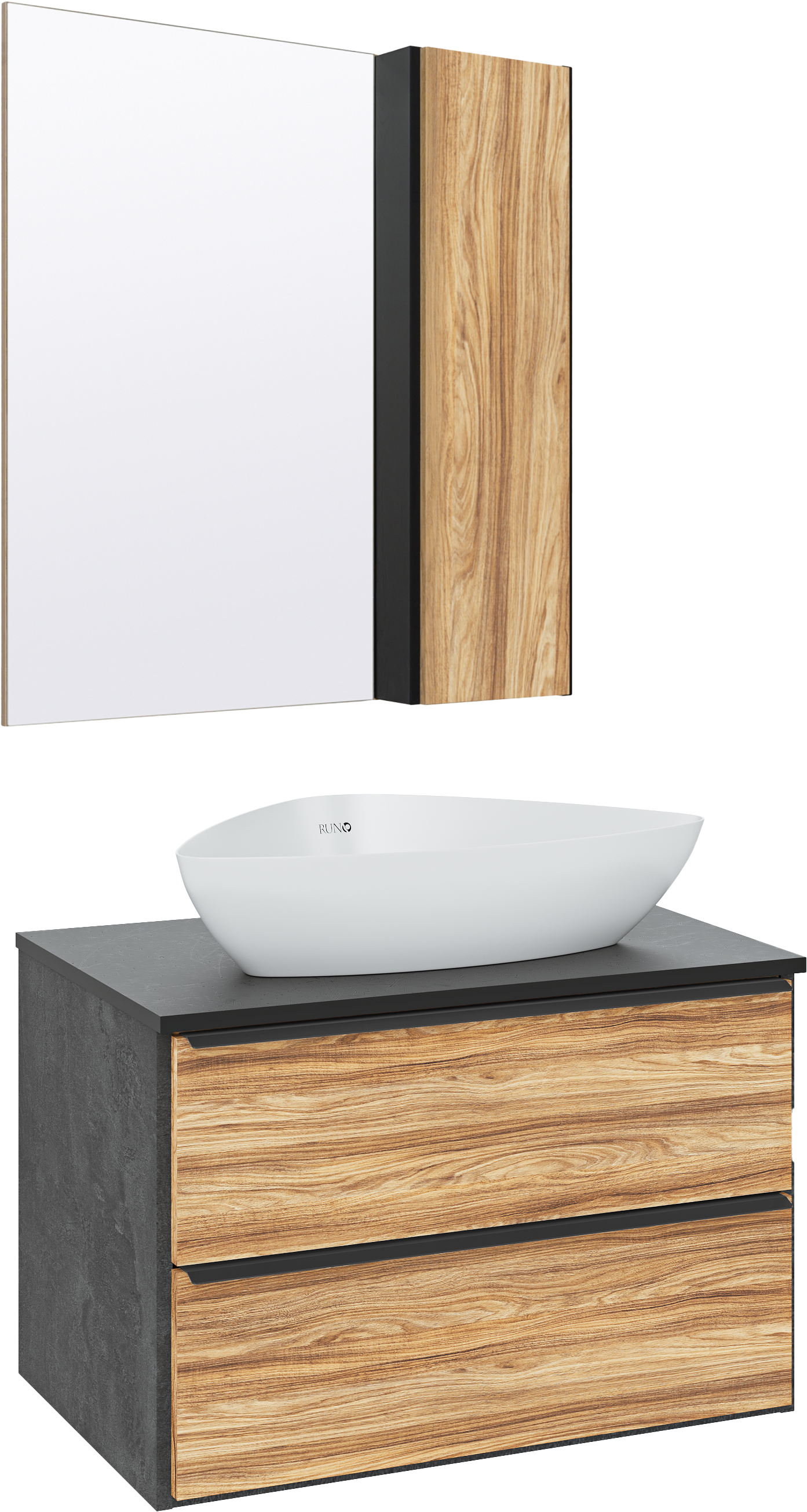 Мебель для ванной комнаты Runo Мальта 70 дуб, черная, раковина Terzo 60