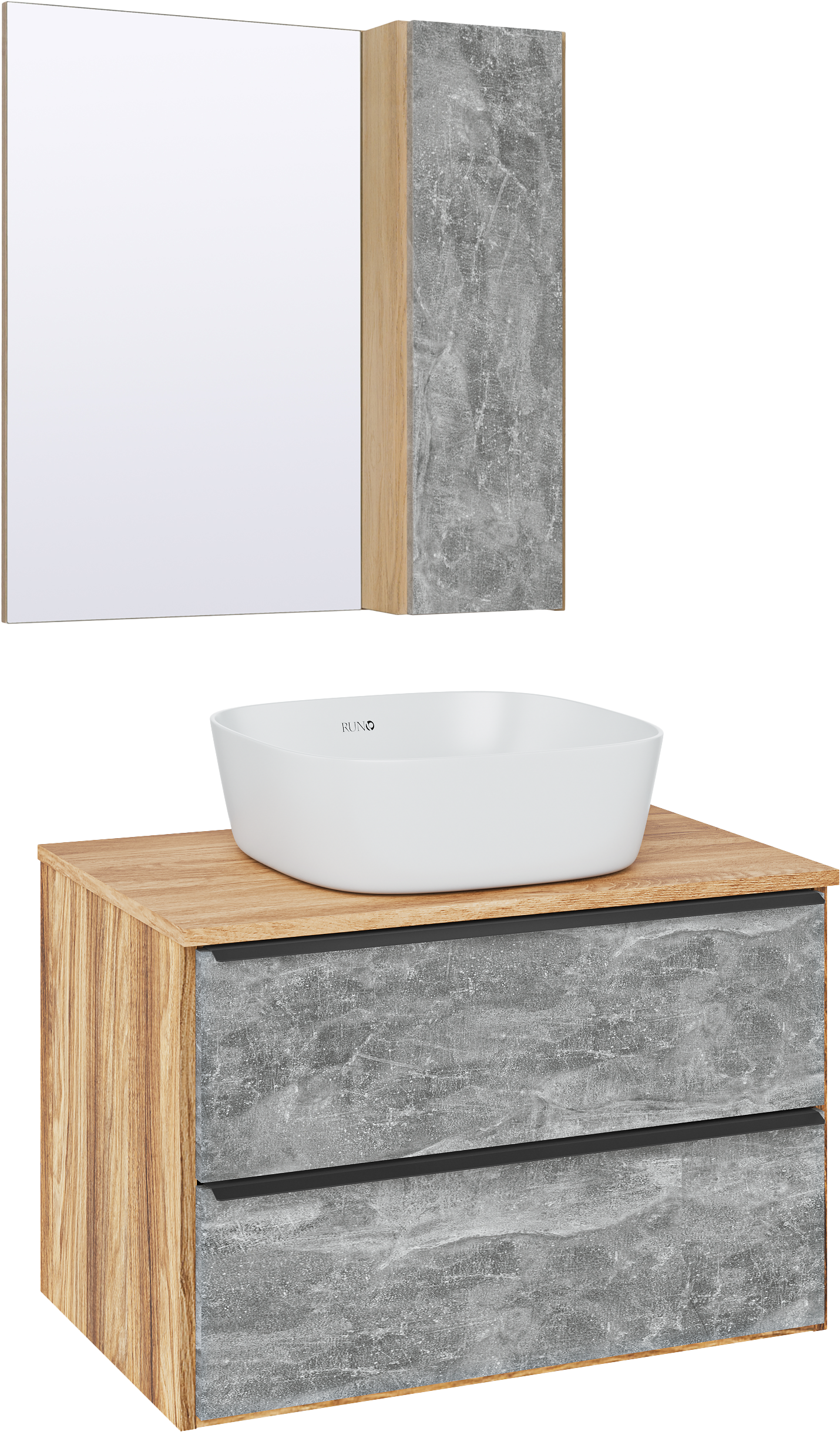 Мебель для ванной комнаты Runo Мальта 70 дуб, серая, раковина Bella 40