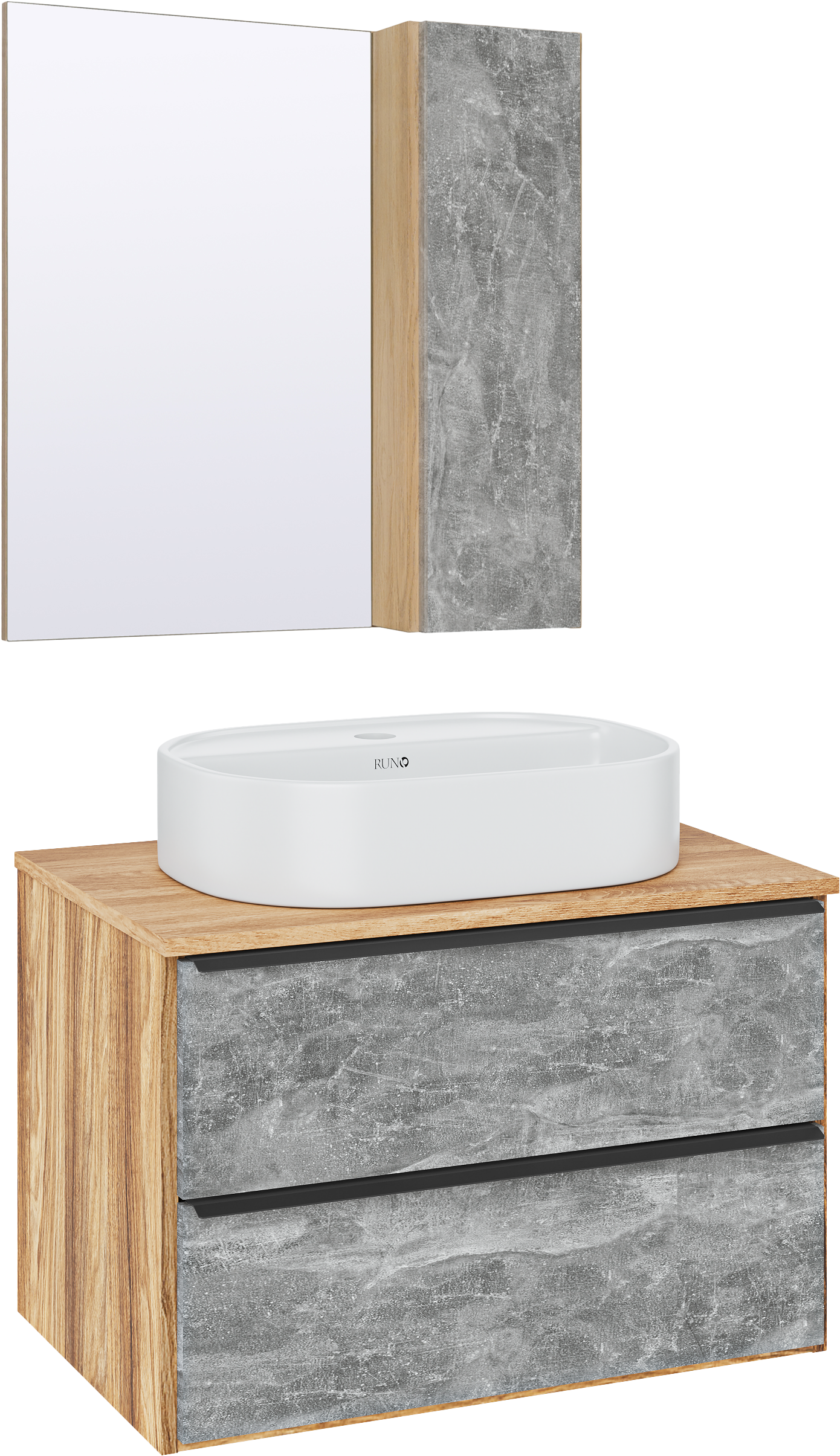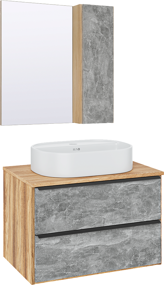 Мебель для ванной комнаты Runo Мальта 70 дуб, серая, раковина Nuovo 50