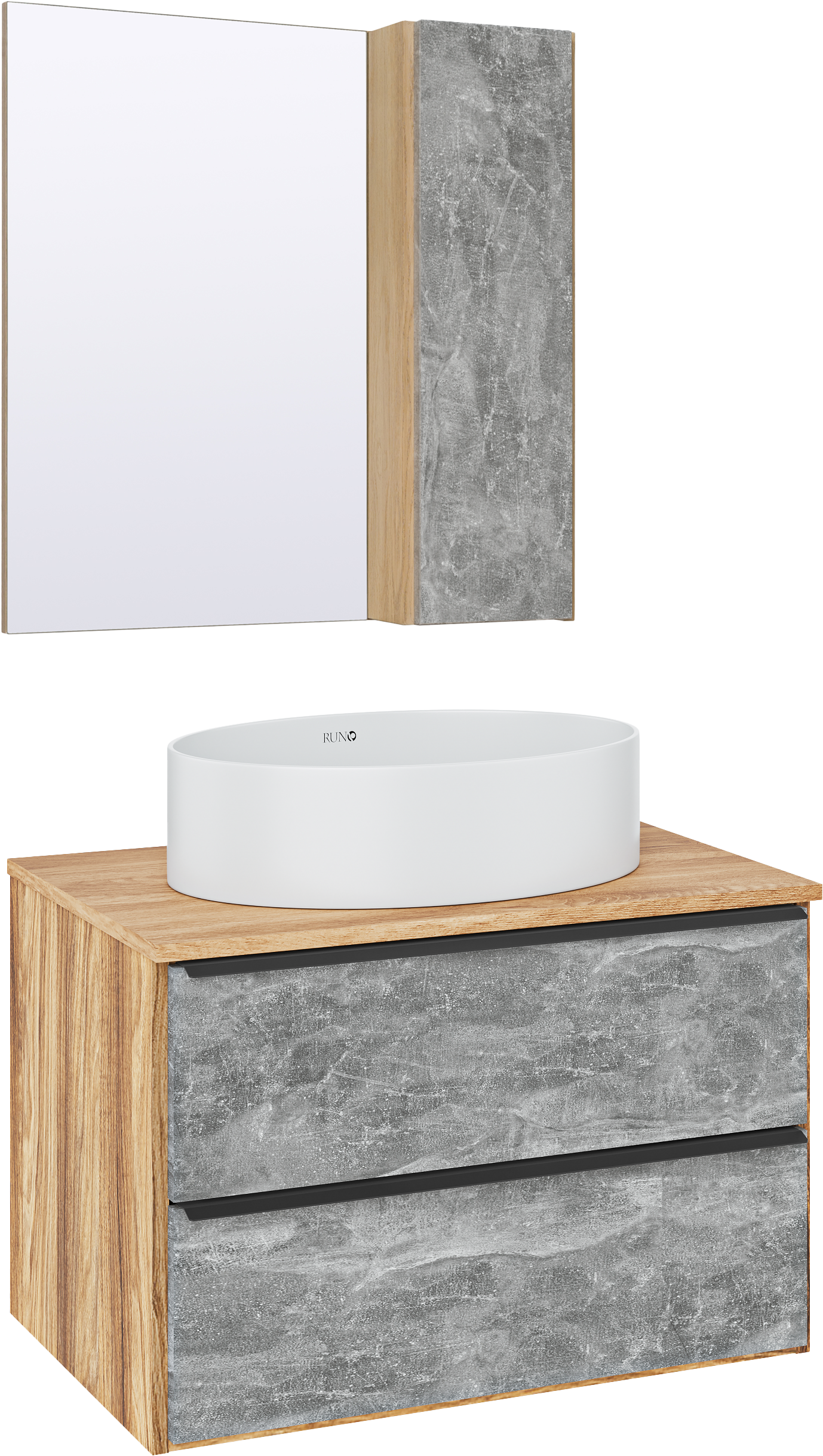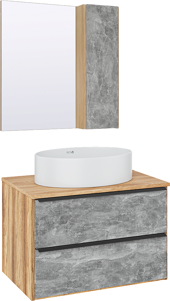 Мебель для ванной комнаты Runo Мальта 70 дуб, серая, раковина Ovale 50