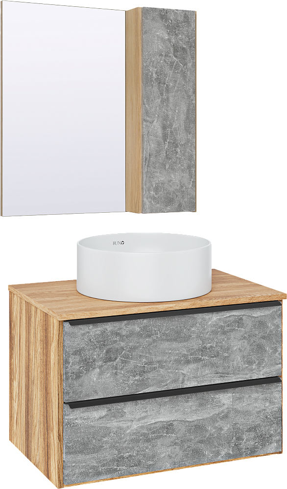Мебель для ванной комнаты Runo Мальта 70 дуб, серая, раковина Palla 40