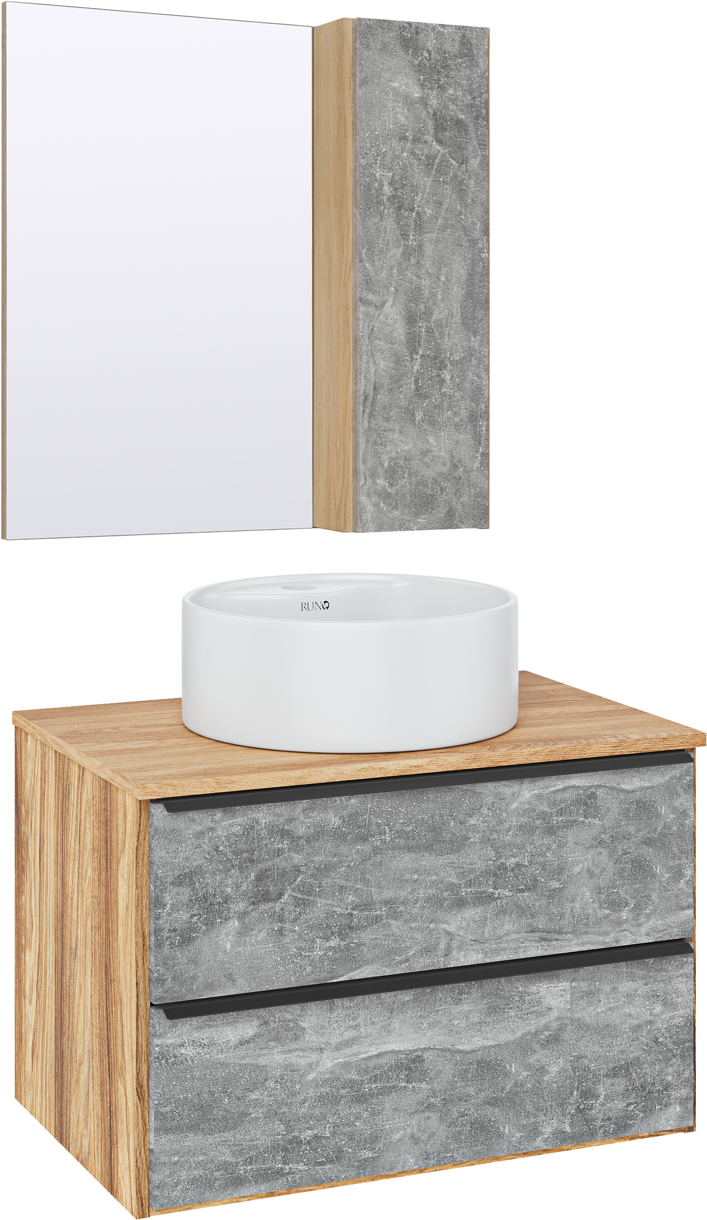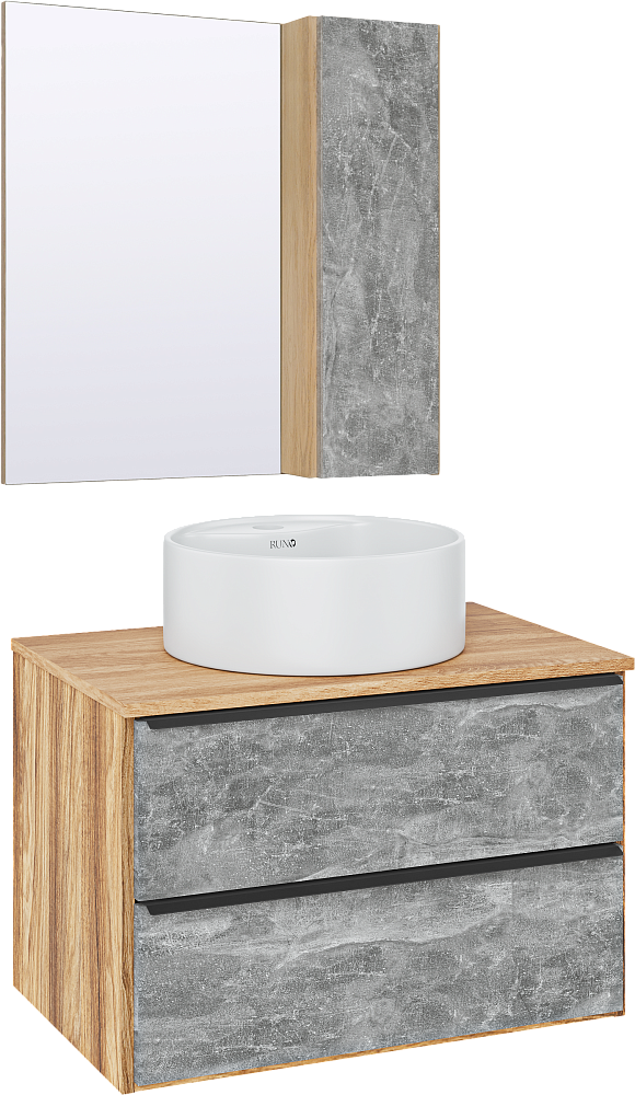 Мебель для ванной комнаты Runo Мальта 70 дуб, серая, раковина Sole 40