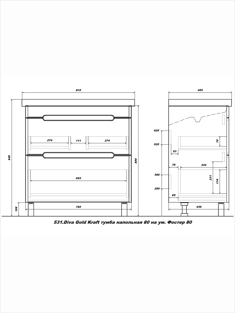 Мебель для ванной комнаты SanStar Diva 80 напольная, Gold Kraft, раковина Фостер 80