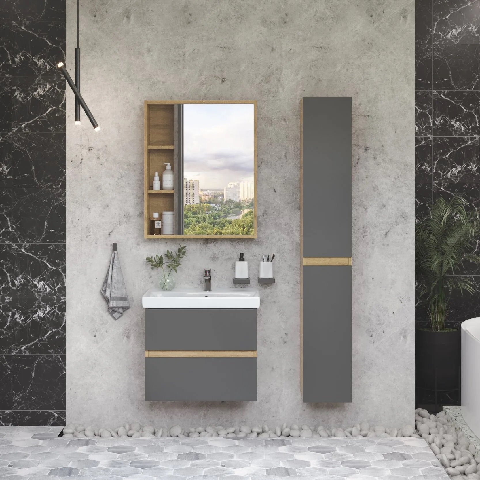 Мебель для ванной комнаты SanStar Graffa 60 дуб вотан, графит софт, раковина Енисей 60