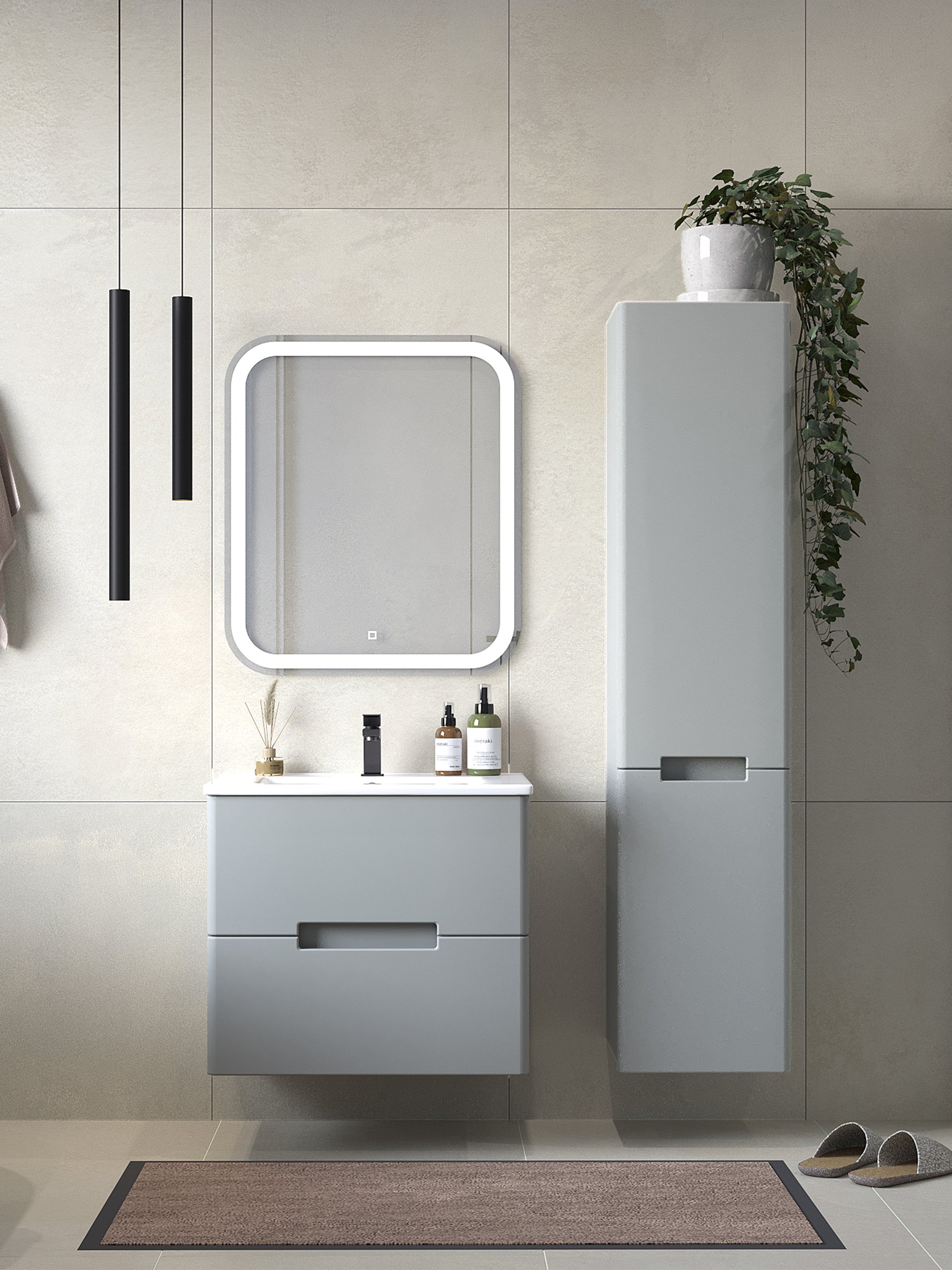 Мебель для ванной комнаты SanStar Ориана 60 подвесная, серая, раковина Sanita luxe Quadro 60